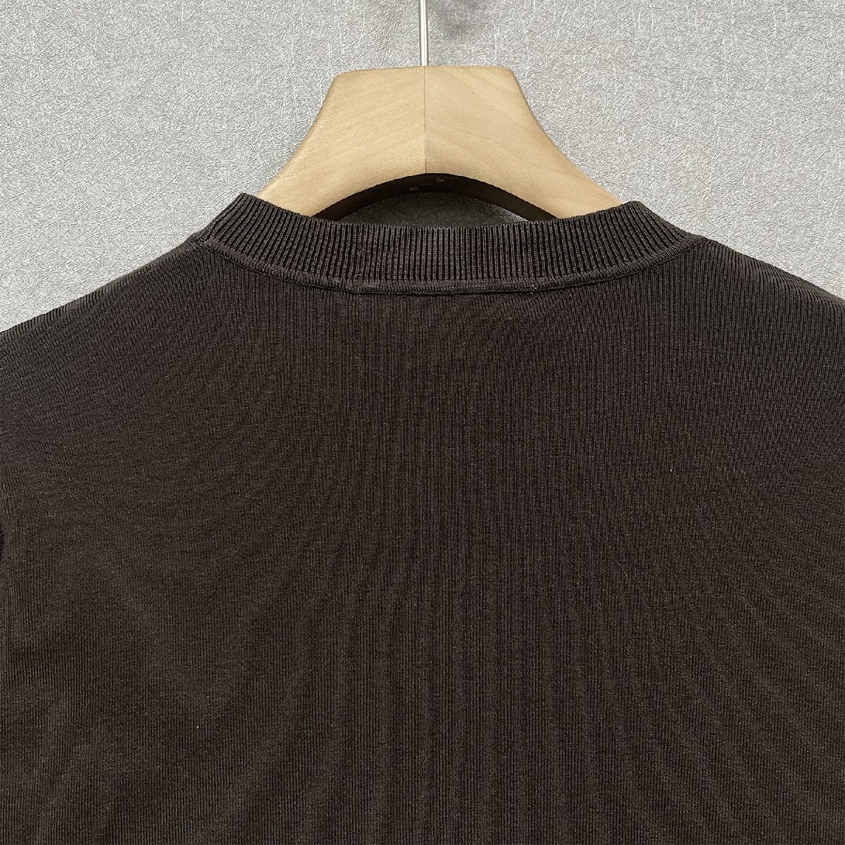 クールネックで首周りがスッキリ見せます。程よいゆる感でネック周りが締め付け感がありません。タイト過ぎない緩すぎない程よい身幅で着やすい。フロントに施された2本ラインがスポーティーなアクセントとなり、全体の無地デザインの中でさりげない存在感を放っています。