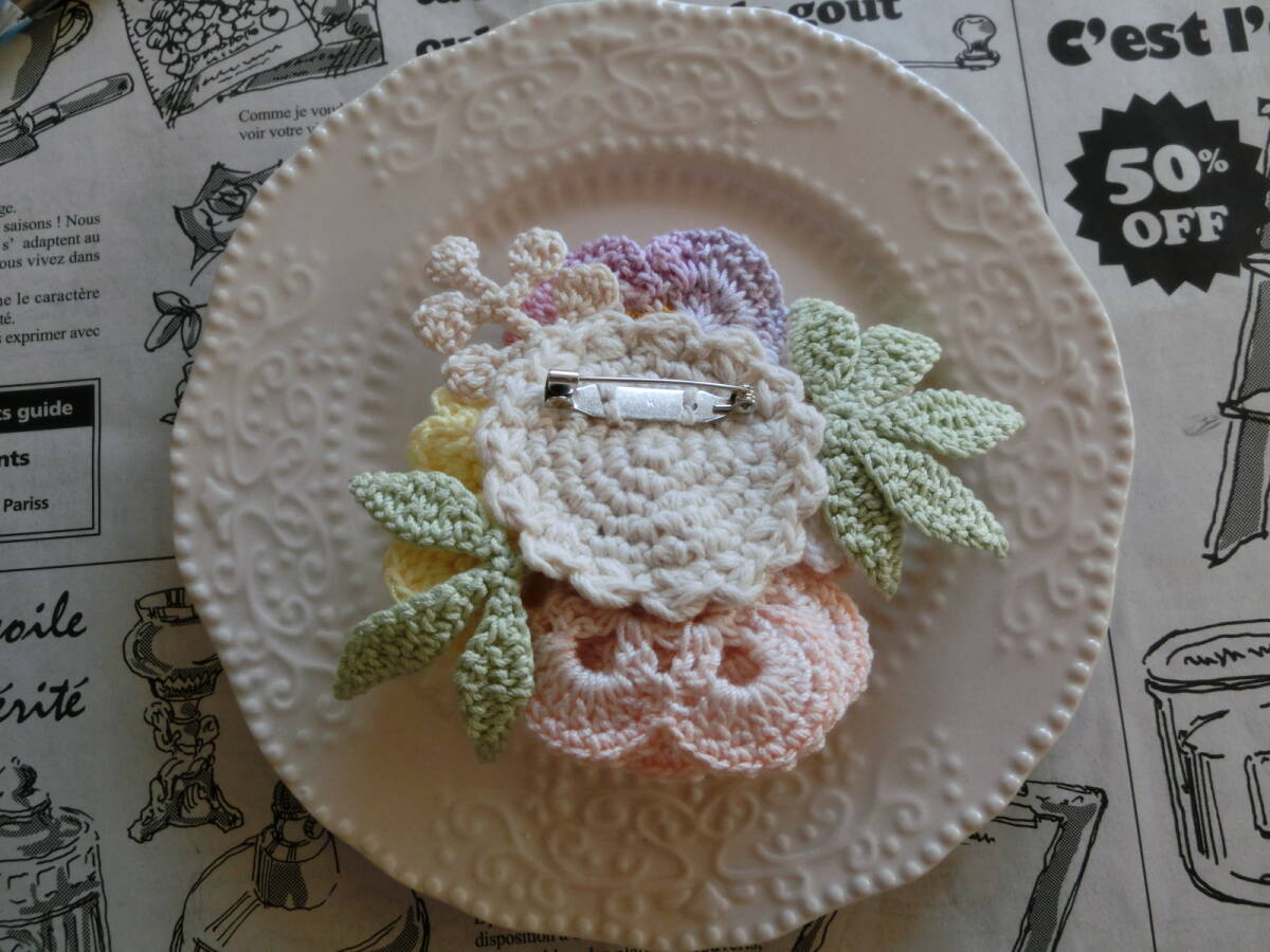 お花は太めレース糸、土台は綿糸で編んでいます。