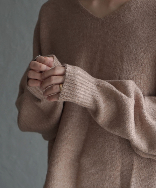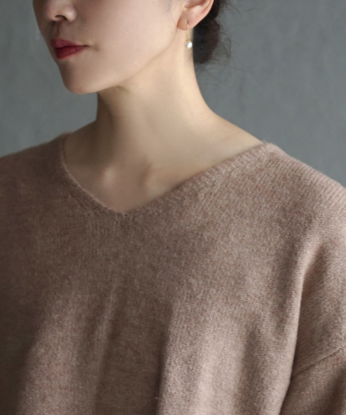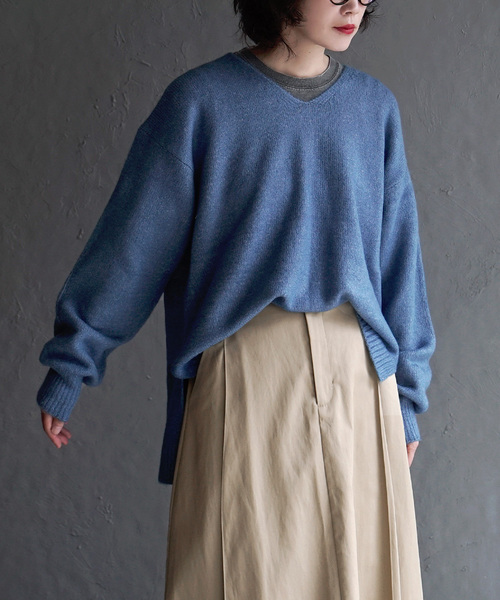 ゆったりとしたこなれ感たっぷりに着られるVネックニット。