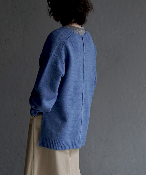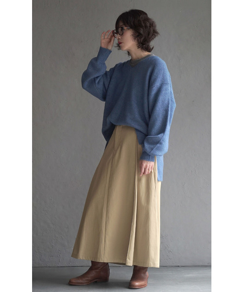 1001 apartment department ワイドシルエット Vネックプルオーバー ブルー