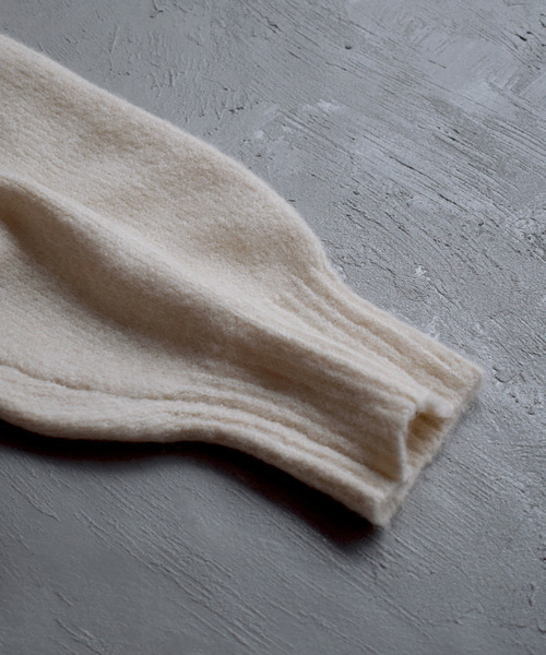なめらかで柔らかな肌触りのヤクライクヤーンで編んだミドルゲージニット。