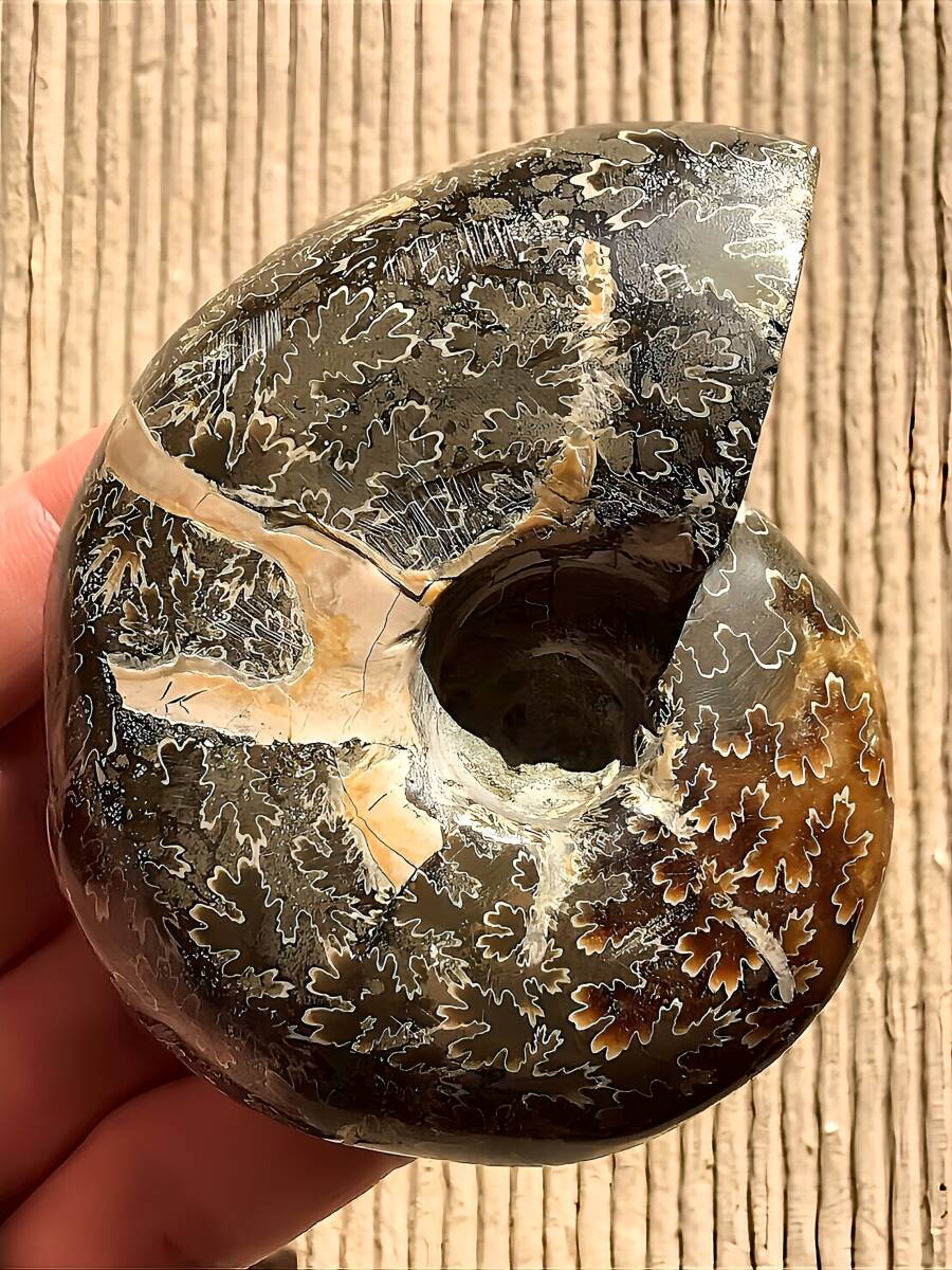 | ☆ | 商品名:マダガスカル産 デスモセラス縫合線アンモナイト ■アンモナイト仏語名:Ammonite Desmoceras ■原産地 マダガスカル、マハジャンガ産 ■サイズ・重さ:198g/8.2cm ■ アンモナイトは、古生代シルル紀末期から中生代白亜紀末までの約3億5000万年前後の間を、海洋に広く分布し繁栄していた頭足類の分類群の一つです。 全ての種が平らな巻き貝の形をした殻を持っているのが特徴です。 一風変わった自然色ものをお探しの方や、大切な方への贈り物としての化石をお考えの方はこの機会にお一ついかがでしょうか。 ■配送方法:レターパックプラス ■送料負担:落札者 ■発送元:東京都 ■海外発送:対応不可 ■発送日までの日数:入金手続き当日発送 ●注意事項● ■ まとめて取引は可能な限り対応します。発送方法の変更が不可な場合はお断りする場合がございますが、同梱にて2点目以降送料無料対応いたします。 ■支払期限については原則2日以内にお願いします。 ■ノークレーム、ノーリターンでお願いしておりますので化石商品の性質をよく御理解した上で入札をお願い致します。 ■評価の悪い方の入札は取り消します。 ■商品は天然物につき画像には映らない多少のキズ、欠け等がある可能性、またカメラの性能や光の具合によって現物との色の違いが若干ある場合がございます。写真コメントで説明していますが、伝わらない点についてはご了承願います。撮影には一切照明を使用せず、日中の自然光で撮影をしています。 | ★ | |||||||