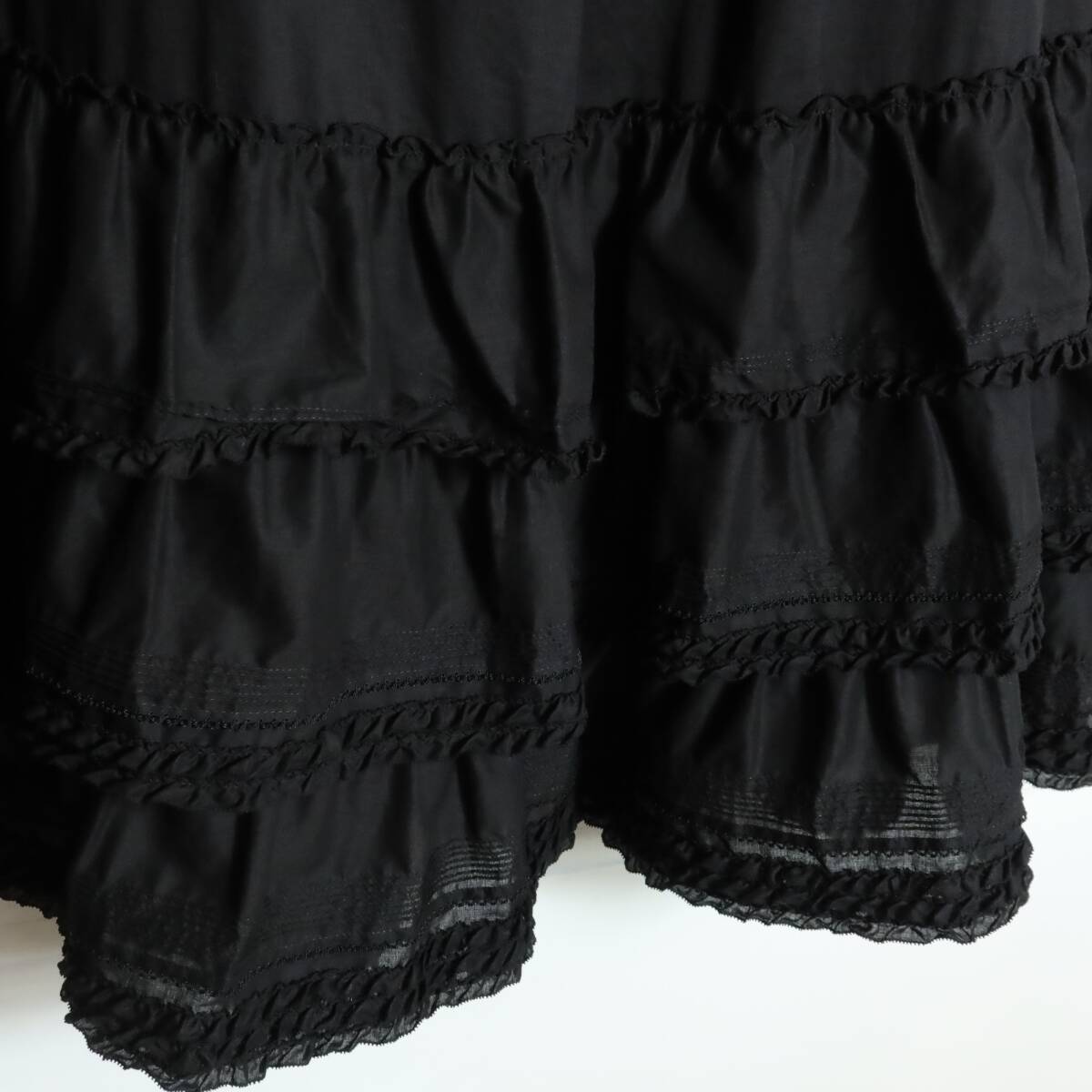 | 商品説明 | 【実寸約】ウエスト70スカート丈88(cm) 【サイズ表記】 表記なし(実寸をご確認ください) 【素材】綿100% 【状態】使用感少なめで極美品の域に入るお品物 【デザイン】黒系 豪華な重ねフリルのボリュームフレアスカートです。 ピコフリルとピンタックをふんだんにあしらった一着♪ 1枚でスカートとして着ても、ペチコートとしてボリュームアップ用に重ねても可愛く使える万能アイテム! パニエを入れてボリュームを出した着こなしもおすすめ。 季節を問わず使える軽やかな素材なので、 普段使いからお出かけまで幅広く活躍してくれます。 薄手/無地 |