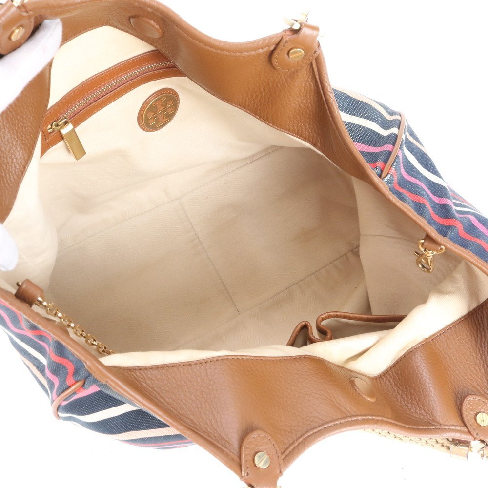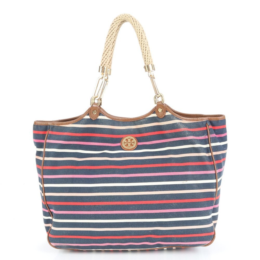1円■美品■トリーバーチ■ストライプ レザー トート バッグ 肩掛け ショルダー ハンド A4 ゴールド 金具 レディース RRE CS29-1