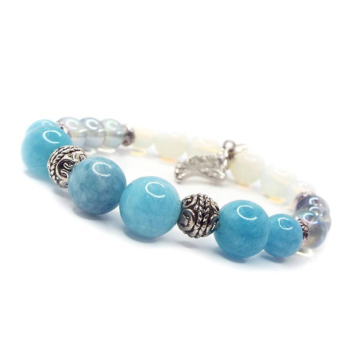 天然石 パワーストーン ブレスレット ブルークォーツ フェザーチャーム D3-37