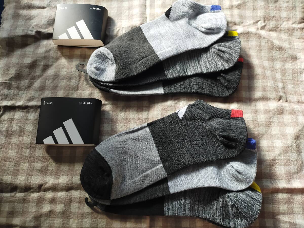 即決 未使用品 送料無料 アディダス 靴下 26〜28cm 6足セット (3足組×2セット) ソックス 黒・グレー スニーカー丈 スポーツ adidas