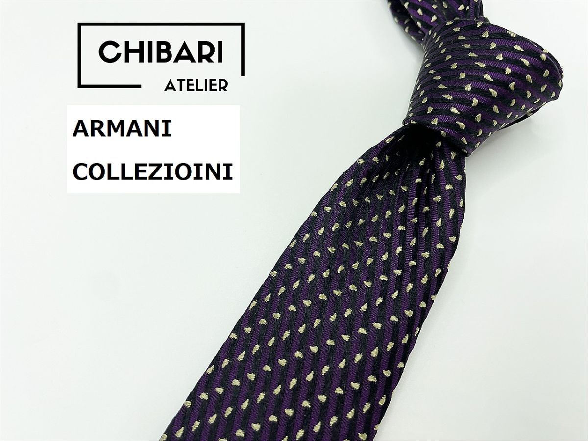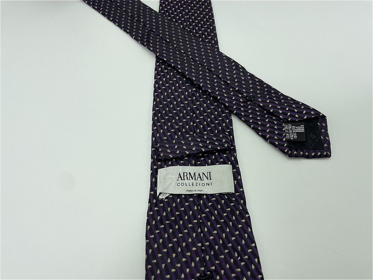 【超美品】ARMANI COLLEZIONI アルマーニコレッチ ドット柄 ネクタイ 3本以上 送料無料 メンズ パープル1101058