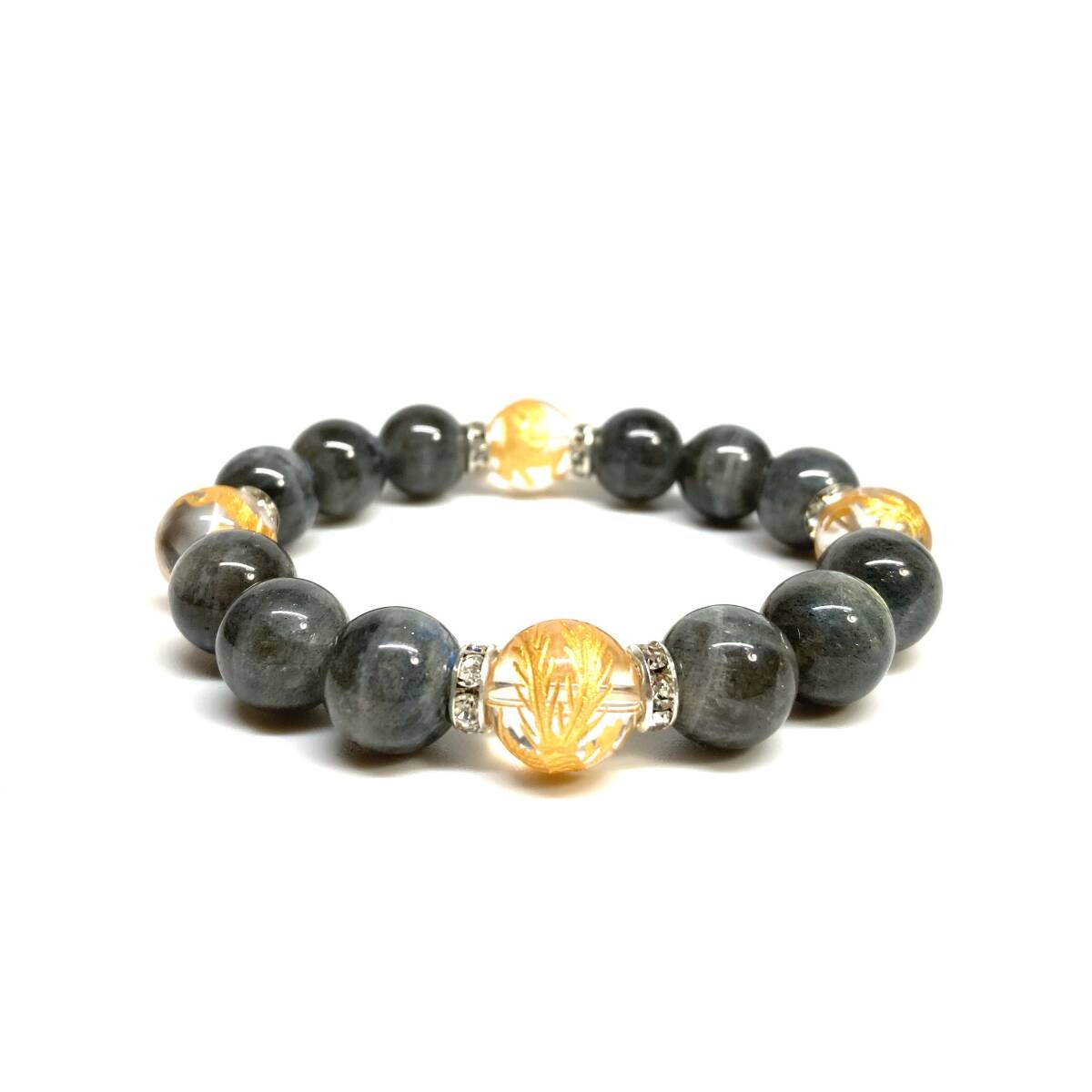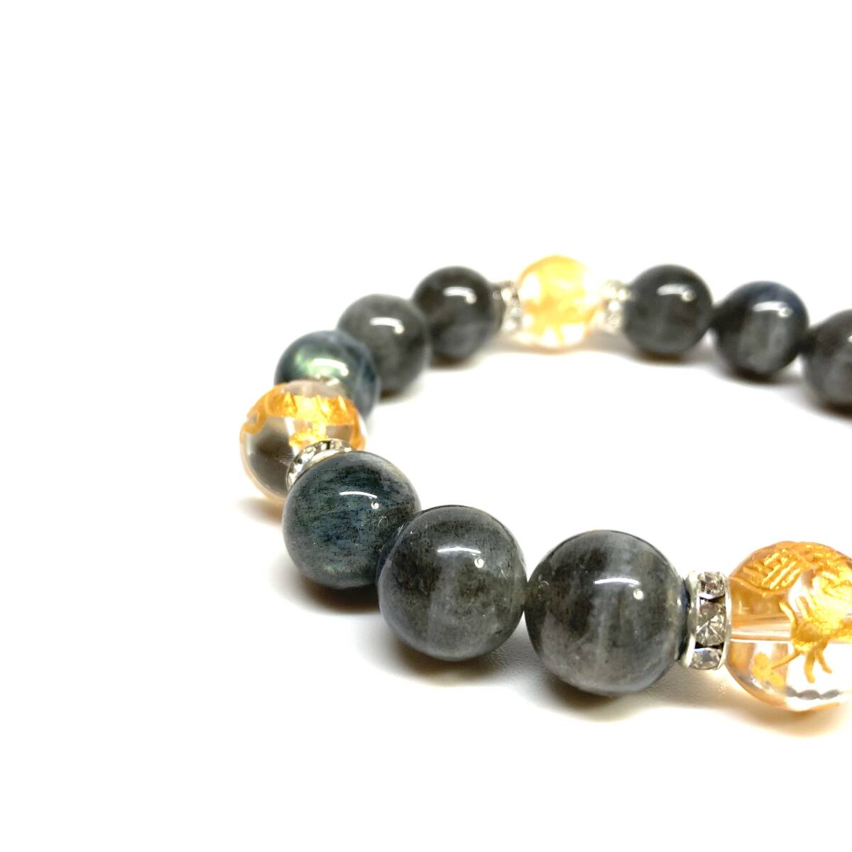 四神獣金彫水晶×ラブラドライト 12mm パワーストーン ブレスレット天然石 青龍 白虎 玄武 朱雀 運気上昇 金運 お守り 四神獸 四神相応 S