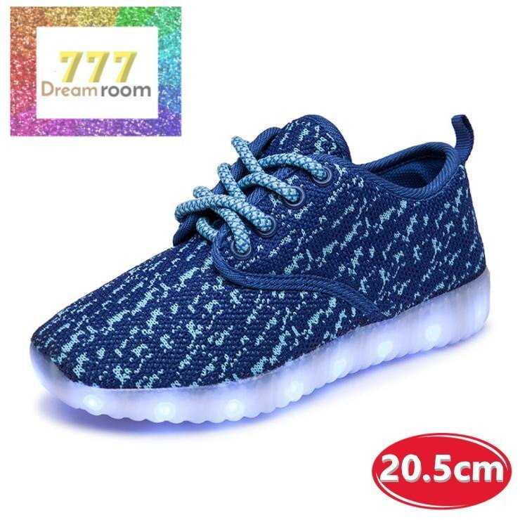 kids 7色に光る☆LED ライトアップ MIXツイードスニーカー 靴紐type 【ブルー 20.5cm】 韓国子供服 キッズ シューズ 子供用 男女