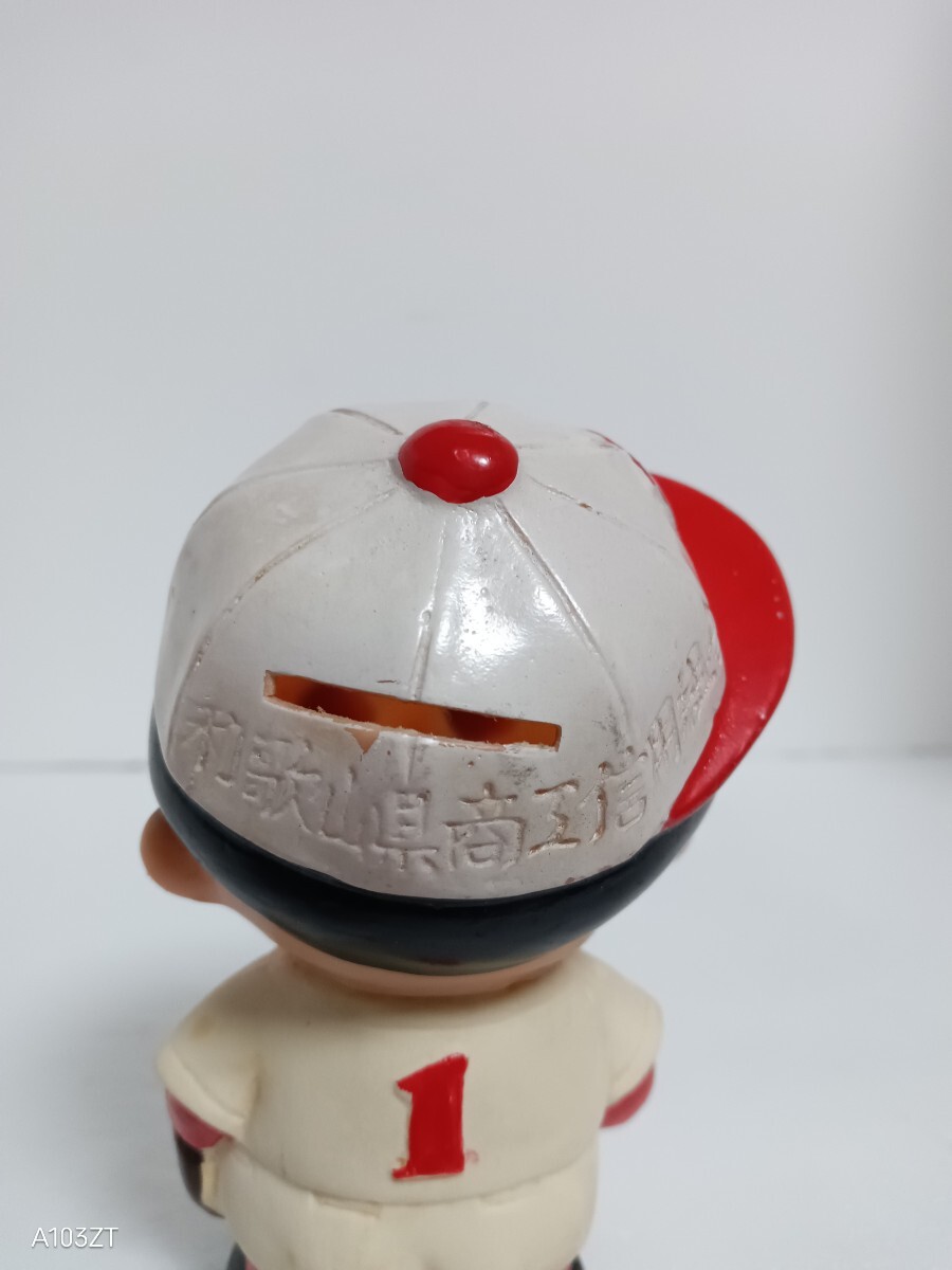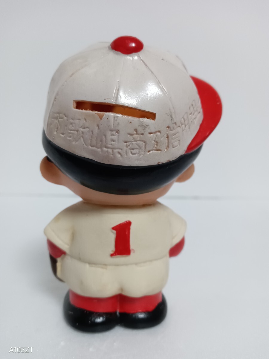 和歌山県商工信用組合、けんしんの野球姿のけんちゃんのソフビ貯金箱となります。