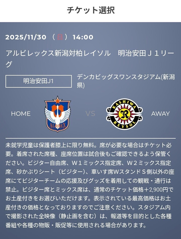 11/30(日) アルビレックス新潟 vs 柏レイソル