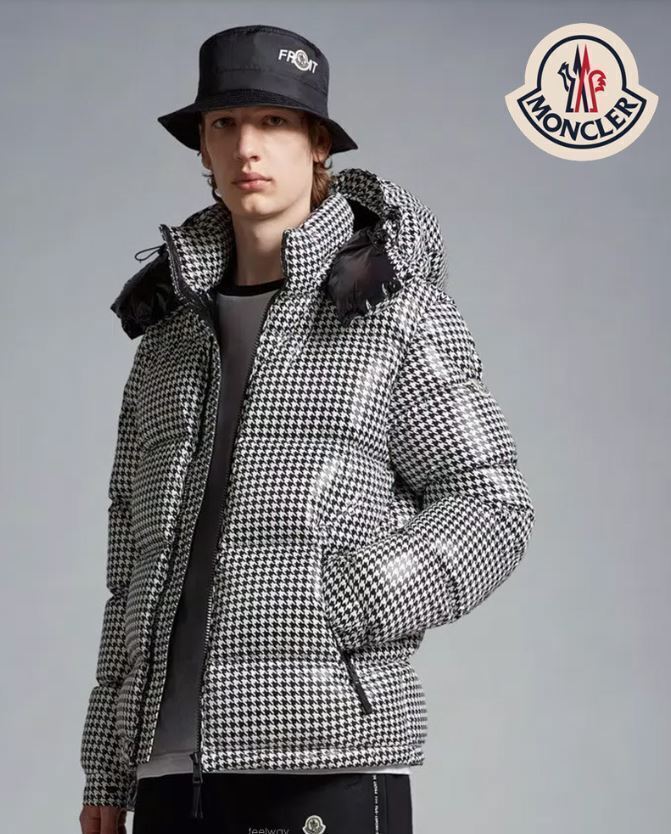 38万1700円 23AW モンクレール× FRAGMENT 千鳥格子 ナイロン ダウン ジャケット MONCLER 国内正規品 フラグメント #A7