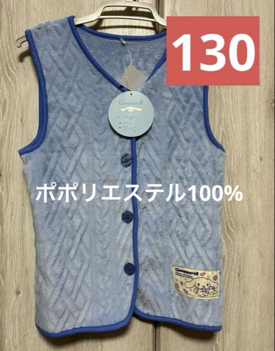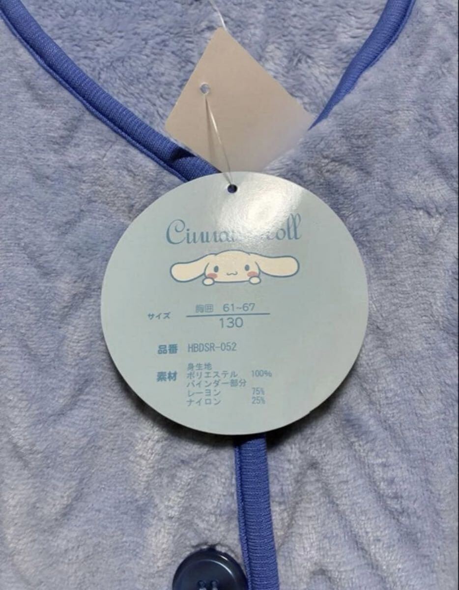 シナモロールの130サイズ、ボタン付きキルティングスリーパー。