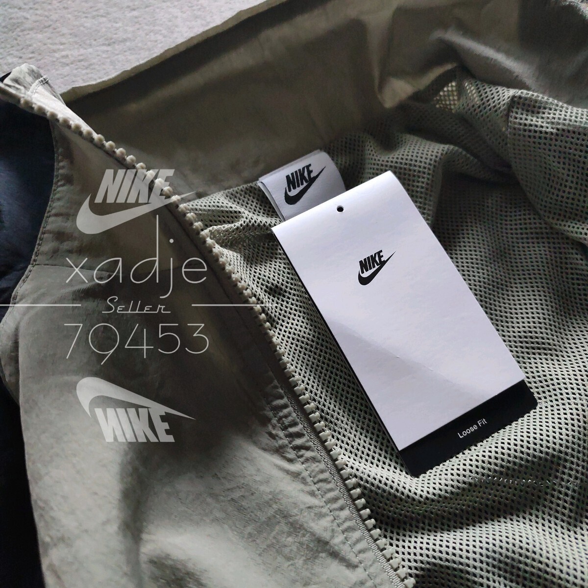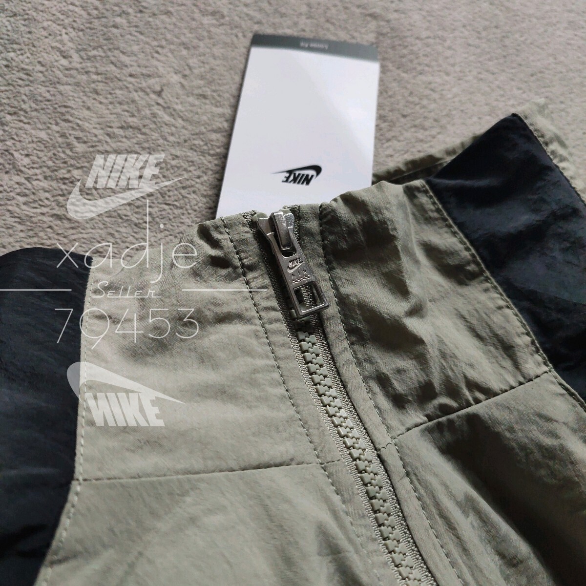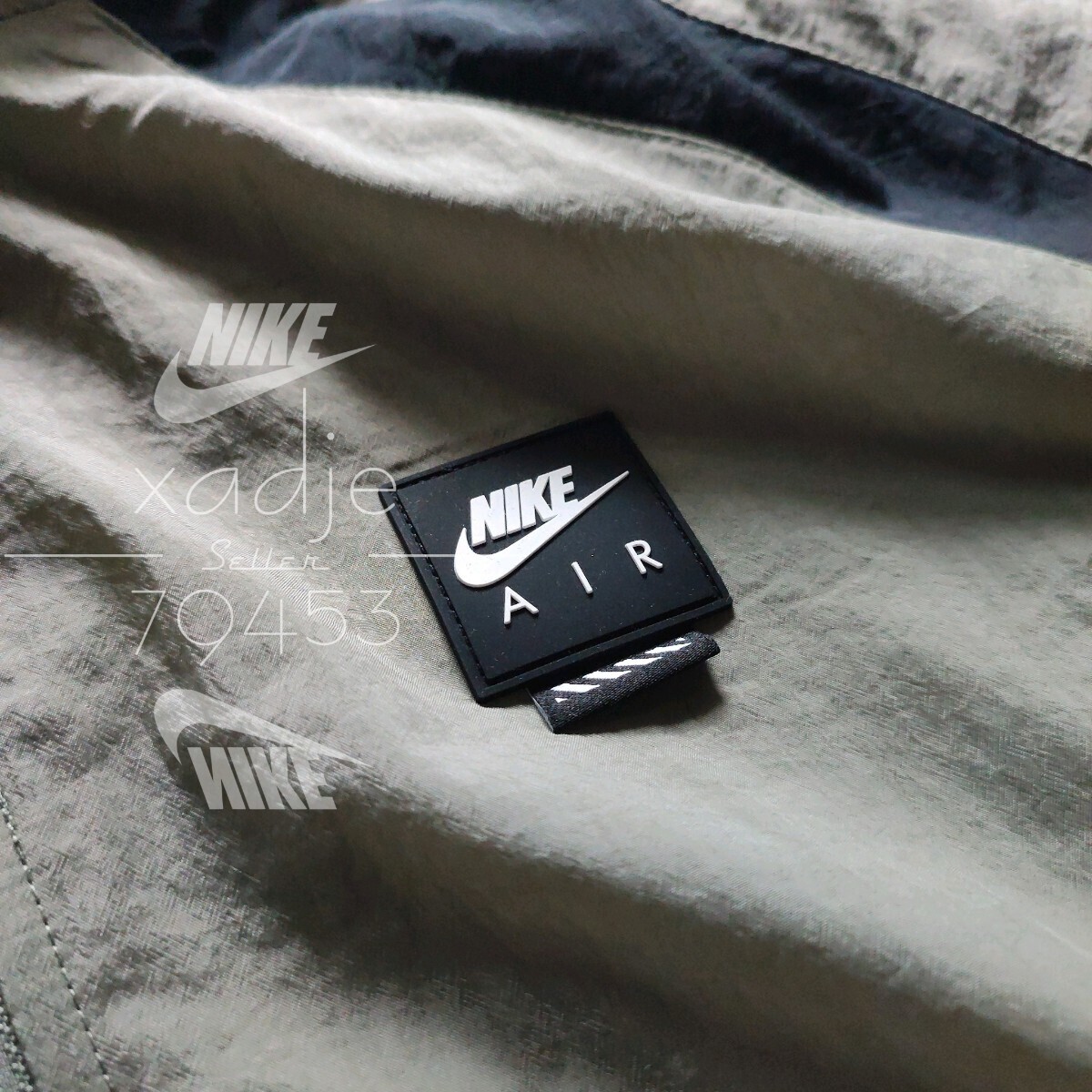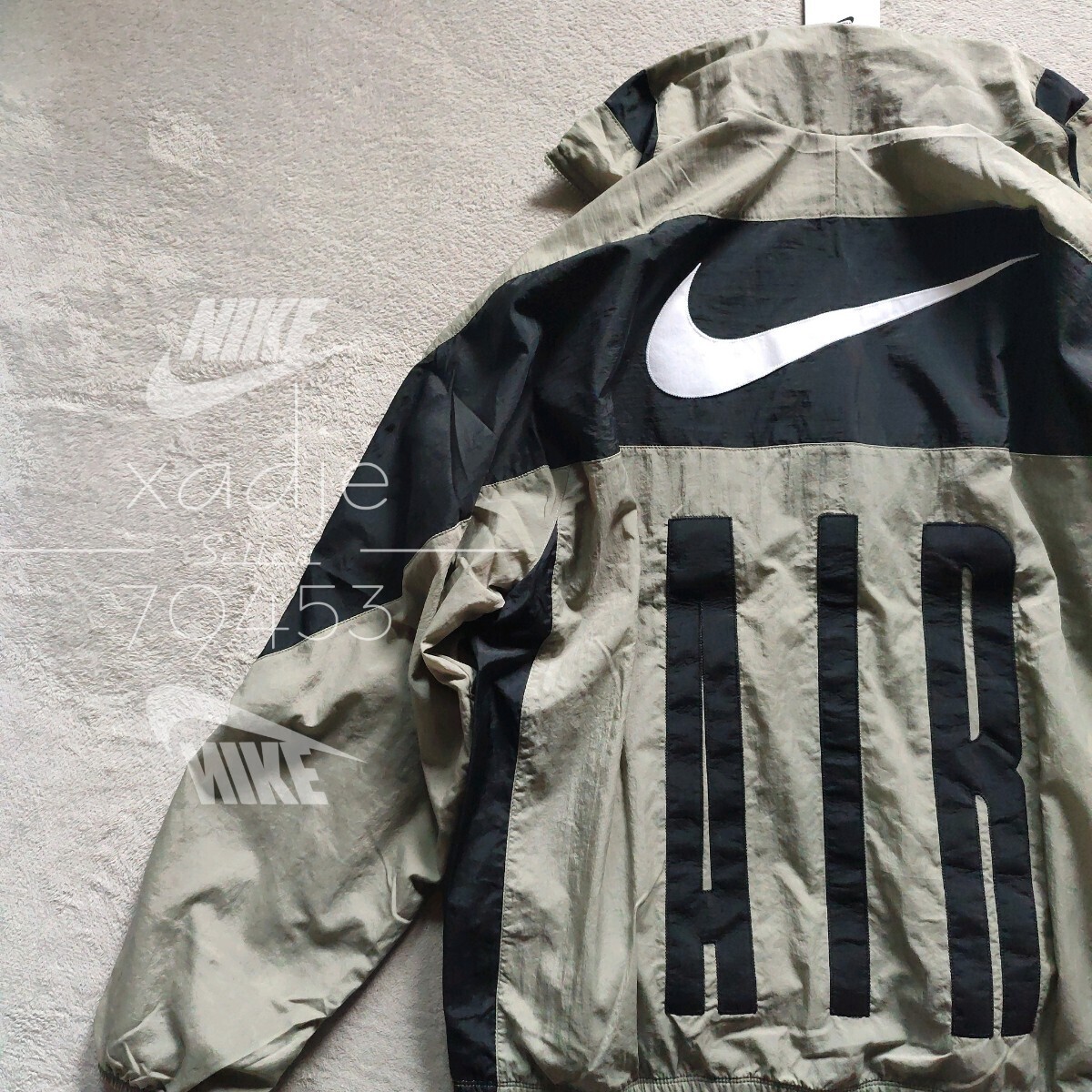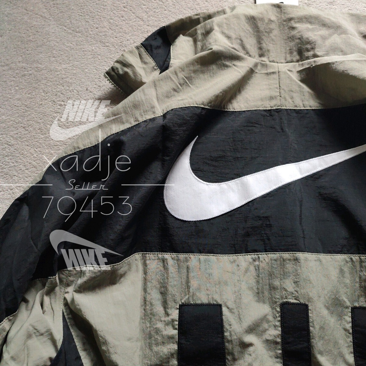 新品 正規品 NIKE AIR ナイキ ビッグスウッシュ ナイロン ジャケット ウィンドブレーカー 裏地メッシュ カーキ 黒 白 定価13640円 2XL XXL