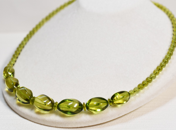 Ж100~リトアニア産天然グリーンアンバー ツイスト 琥珀 50.6㎝ 18g ネックレス