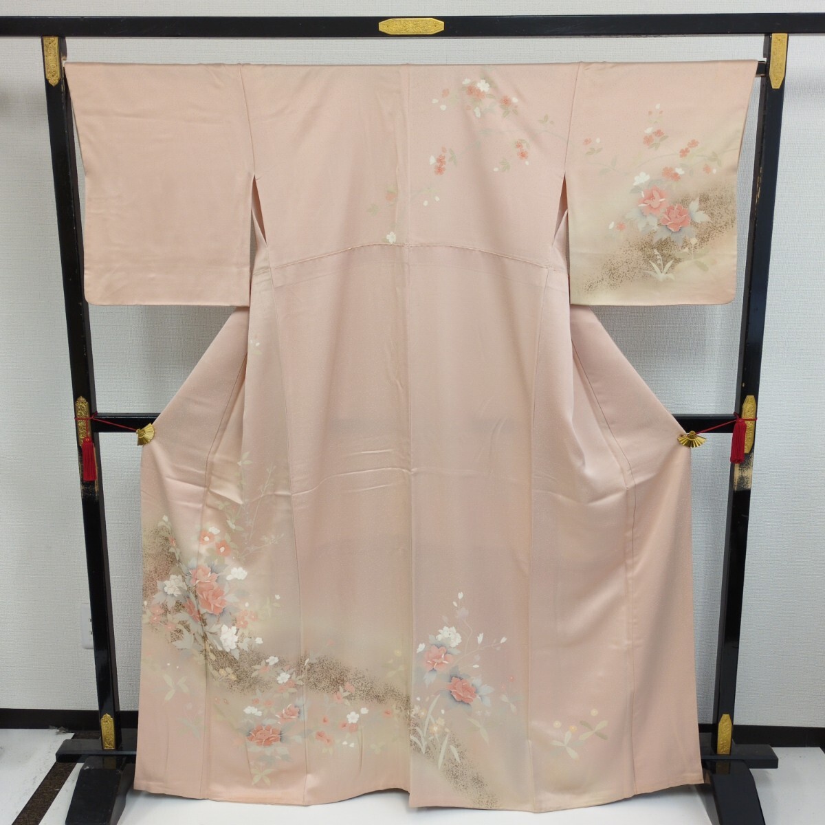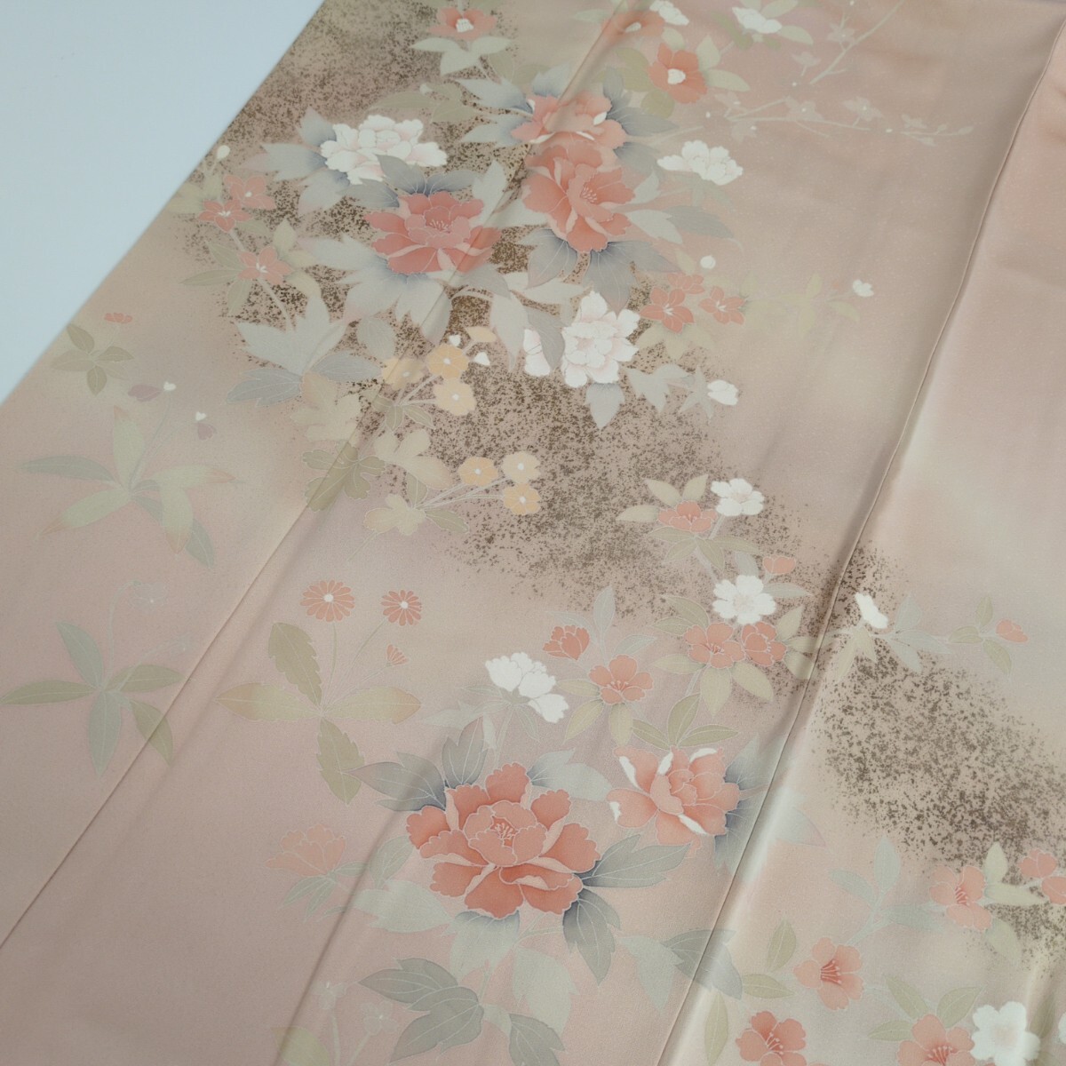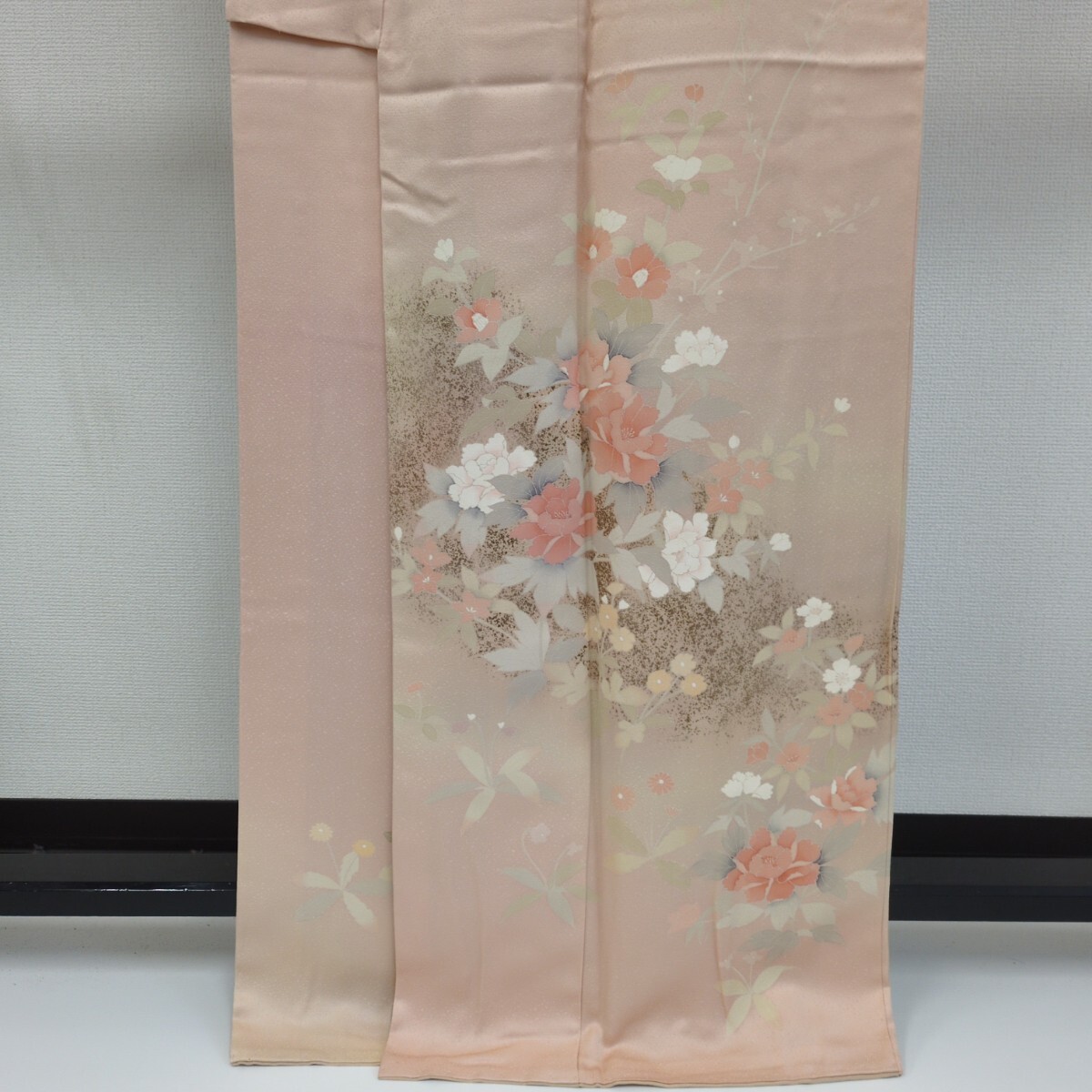【楓】裄67 付け下げ 正絹 紋なし 金彩 染めの美しい花 袷 着物 KK-1853