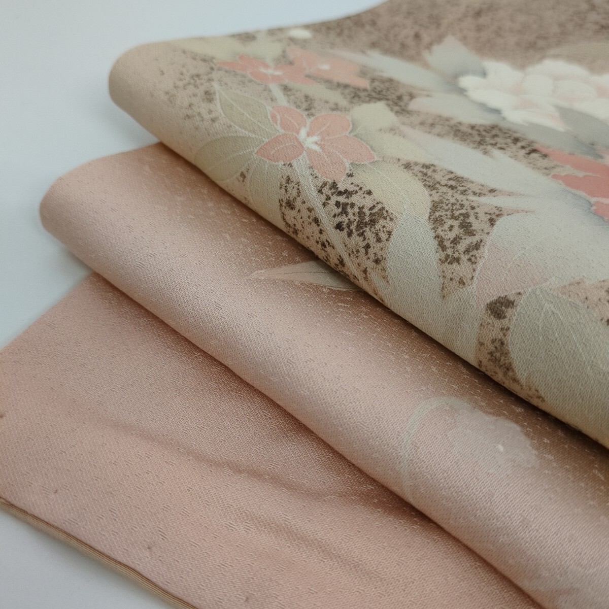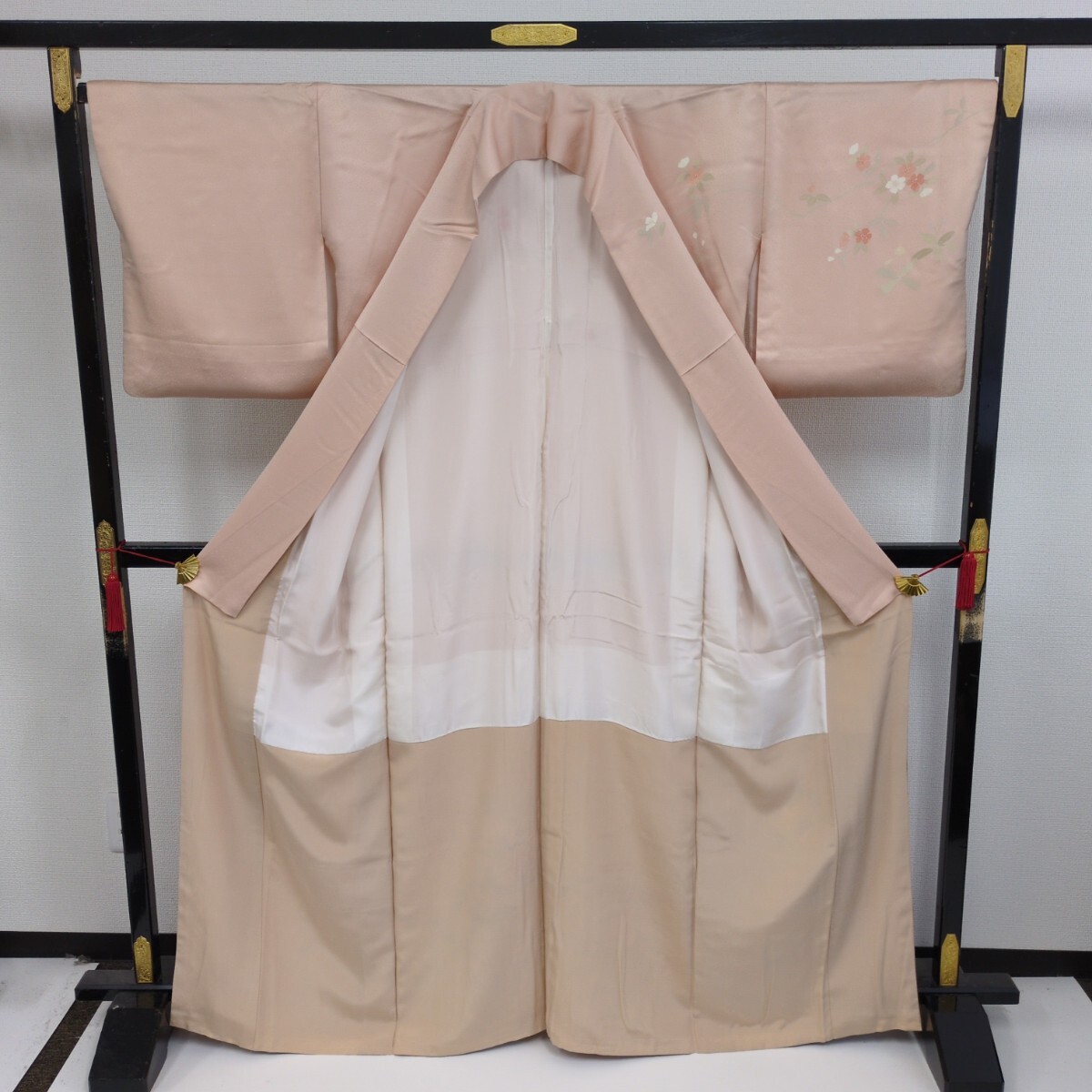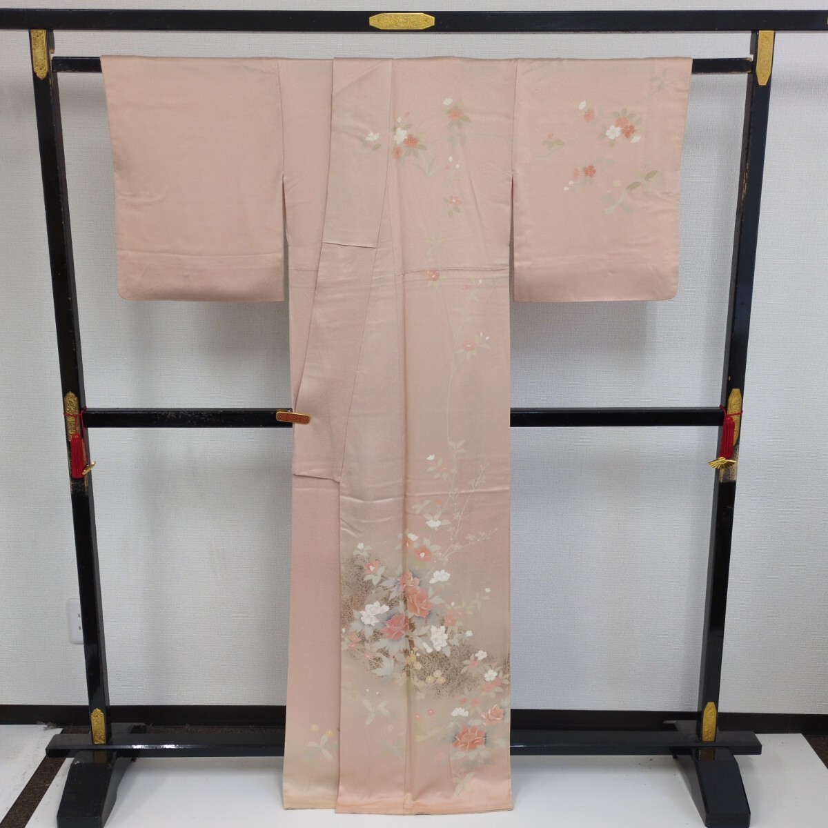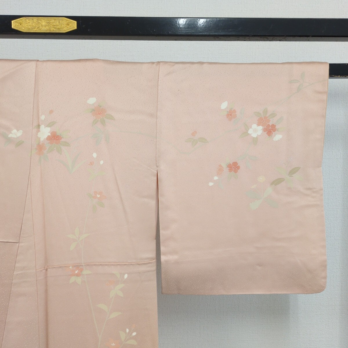 【楓】裄67 付け下げ 正絹 紋なし 金彩 染めの美しい花 袷 着物 KK-1853
