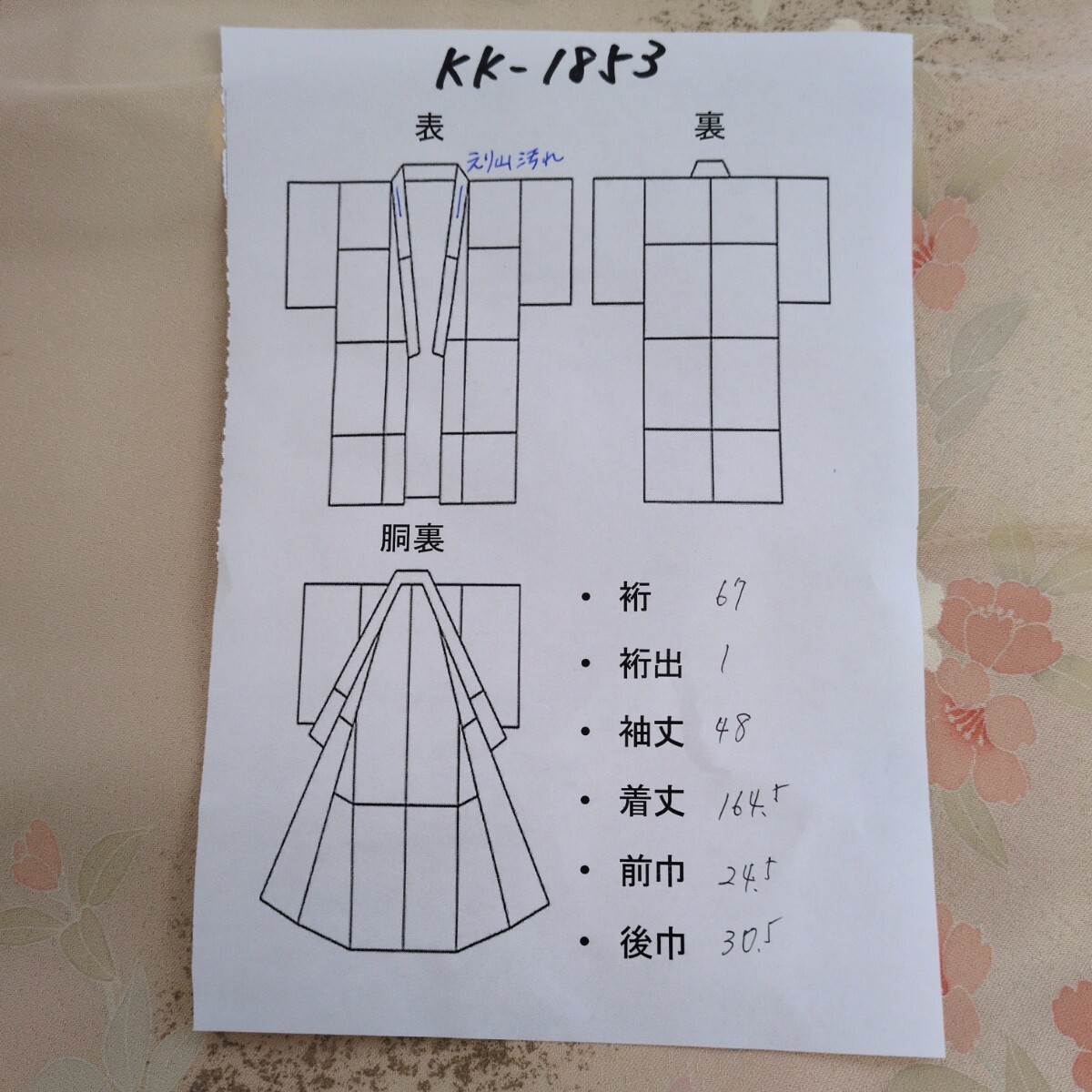【寸法】cm 身丈は肩からの計測