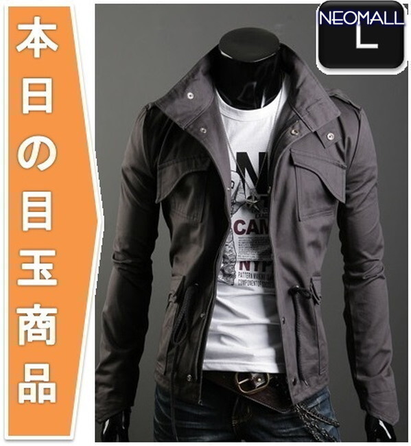 本日の目玉商品【265】メンズジャケット グレー L メンズ アウター アウトドア 防風 軽量 ジャケット 秋 春 薄手