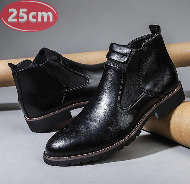 サイドゴア メンズ ビジネス レザー シューズ ブラック 25.0㎝ 革靴 靴 カジュアル 屈曲性 通勤 軽量 インポート品【n165】