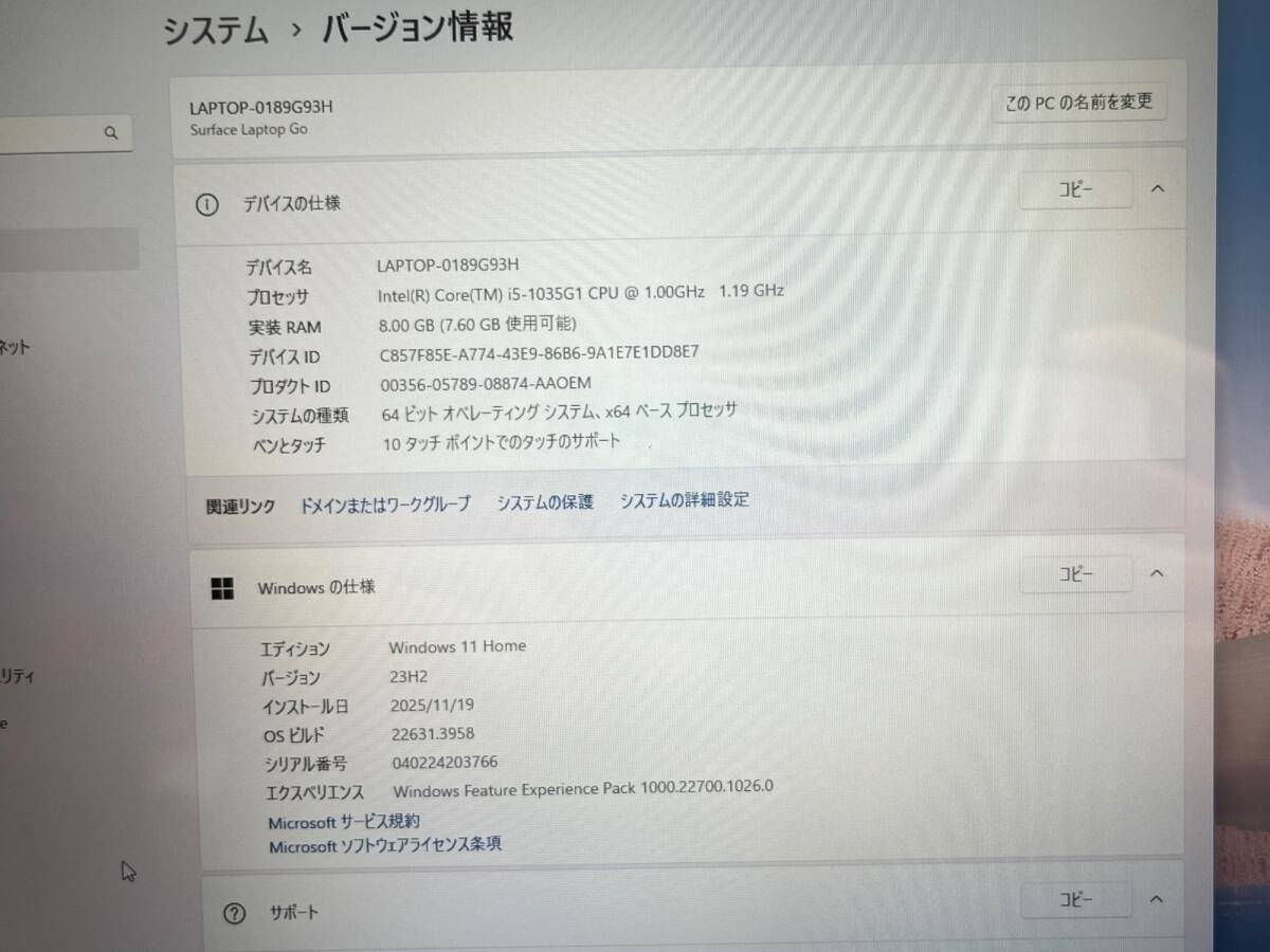 | 【商品名】 Surface Laptop Go Model1943 i5/8GB/128GB 初期化済み パス00002117201 |