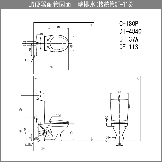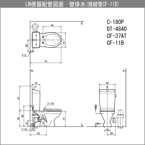 便器 LN便器(手洗付・壁排水) 普通便座セット C-180P,DT-4840,CF-37AT リクシル イナックス LIXIL INAX★