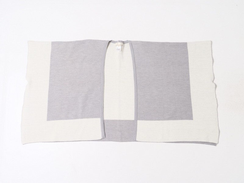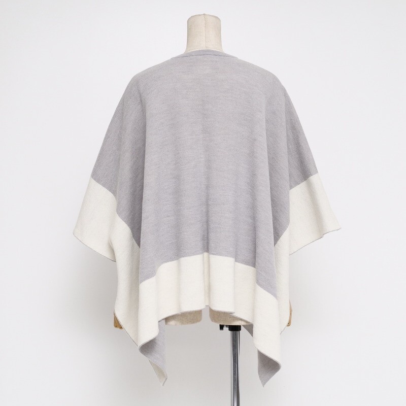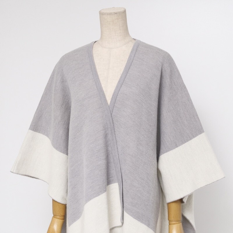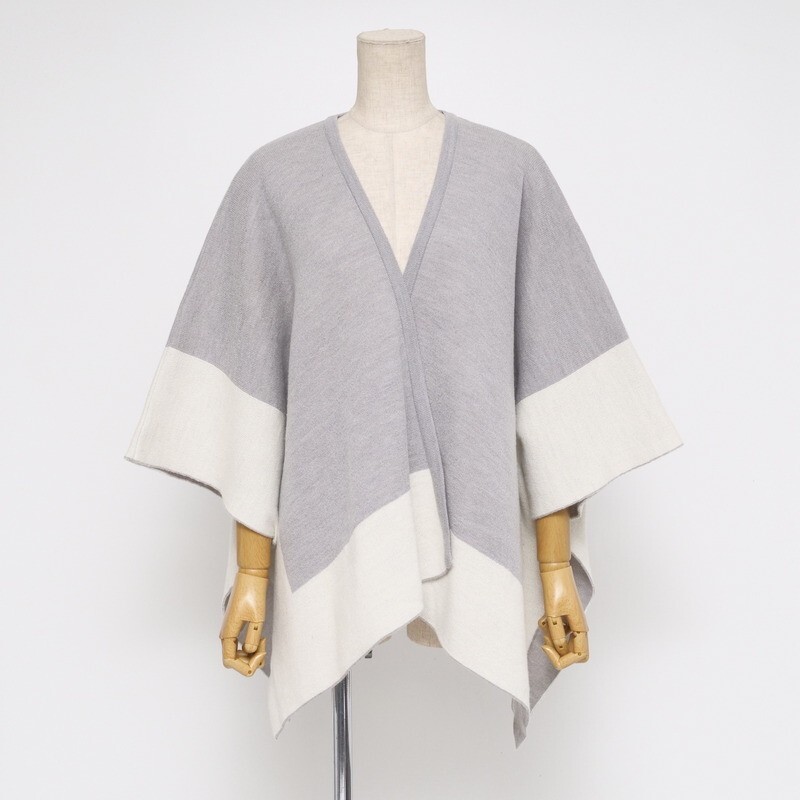 | TJ6447★自由区 ウール ポンチョ バイカラー ライトグレー×アイボリー サイズF 日本製 羽織り | |||