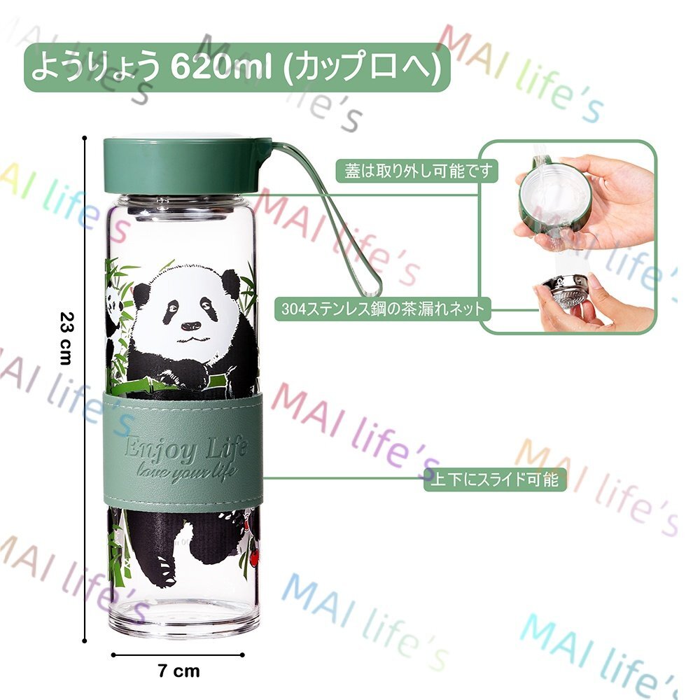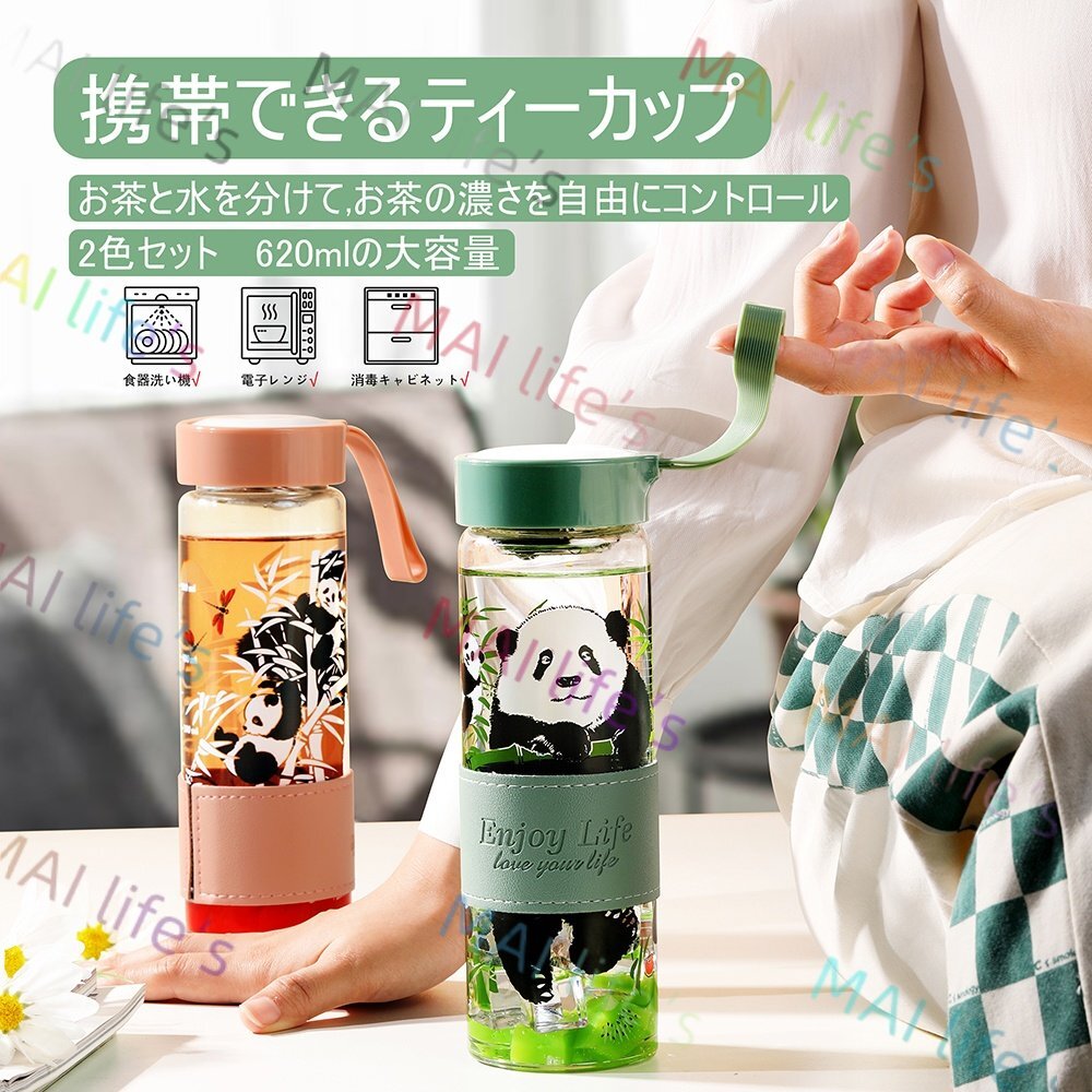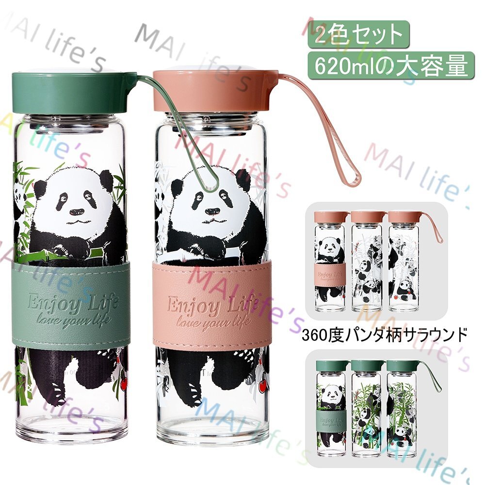 パンダ 水筒 620ml*2 ウォーターボトル 軽量 水筒 スポーツドリンク ボトル 洗いやすい 水筒 キャリーハンドル付き 大人 子ども 使いやすさ 滑り止め 贈り物 結婚祝い
