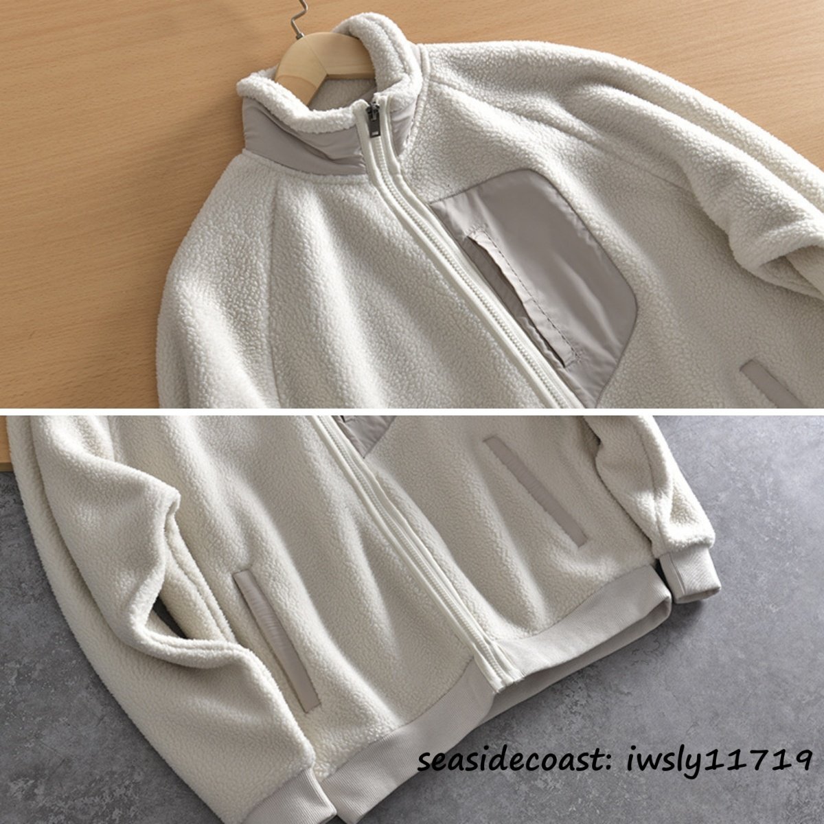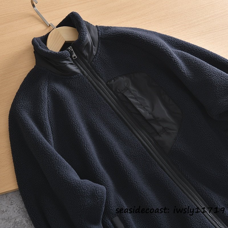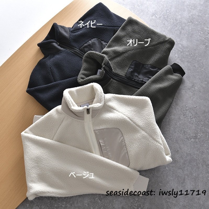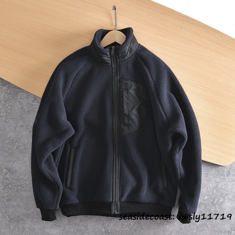 新品■フリースジャケット メンズ 無地 スタンドカラー 裏ボア 厚手 暖かい 防風防寒 モッズコート 秋冬 アウター アウトドア ブラック L
