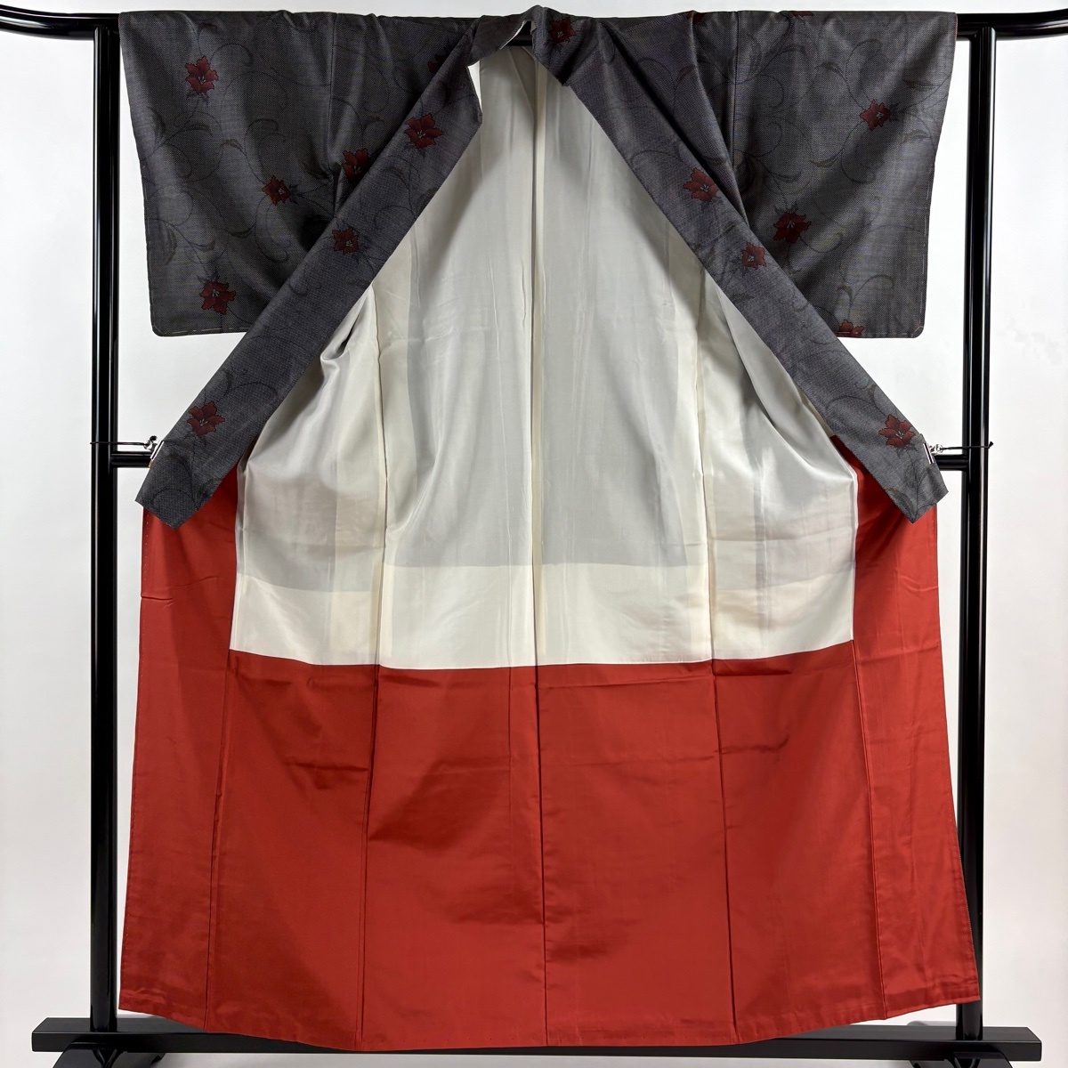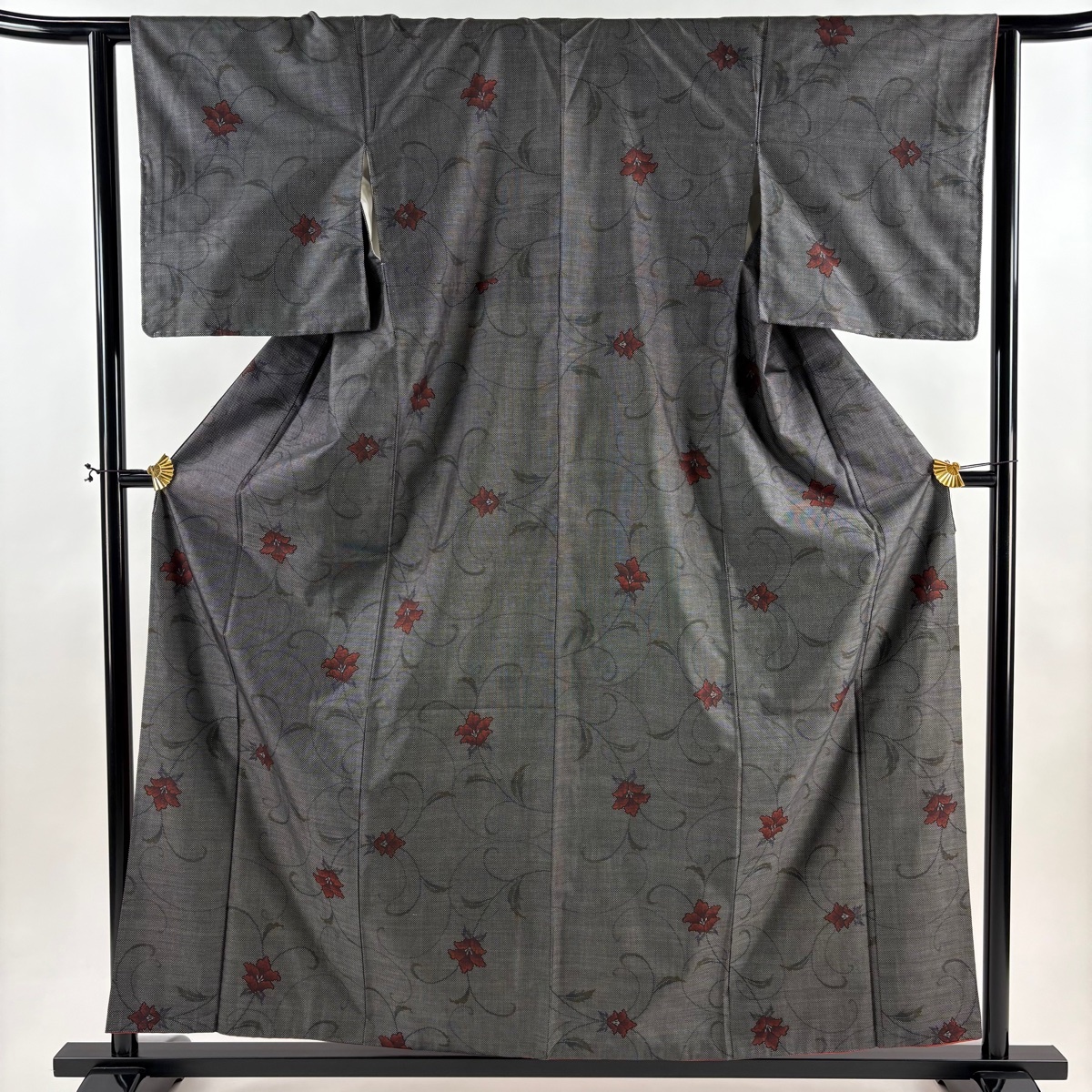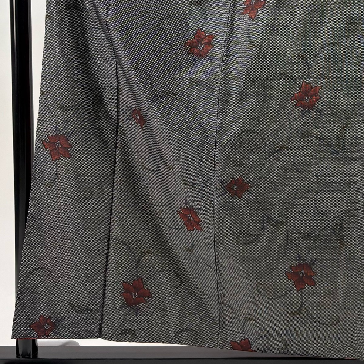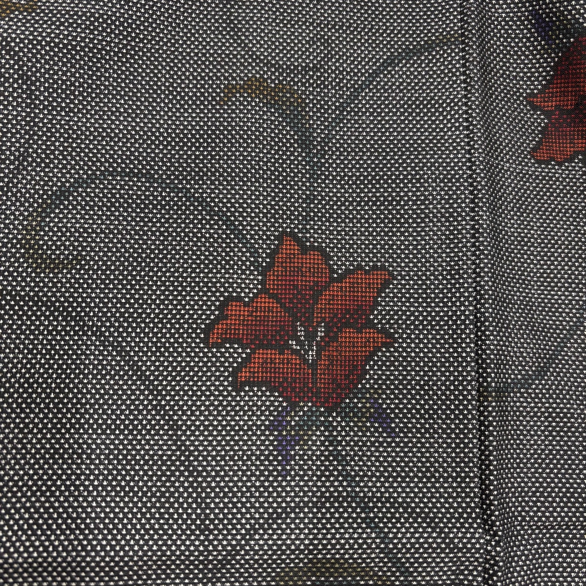 | 大島紬 美品 秀品 証紙 花唐草 黒灰 袷 身丈158.5 裄丈61.5 S 正絹 【中古】 |