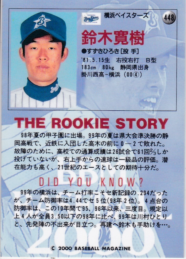 ●2000BBM【鈴木 寛樹】ルーキーカード No.448:横浜
