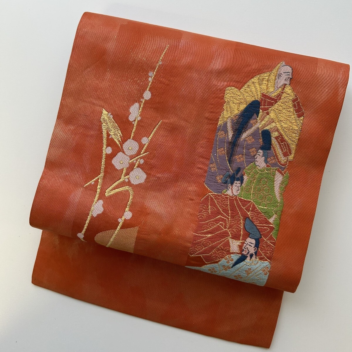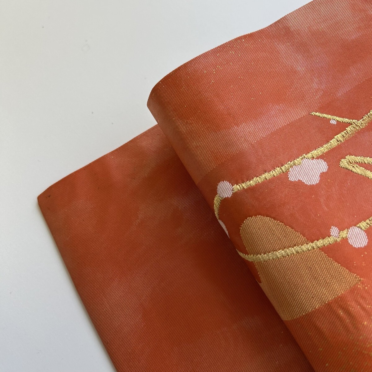 【楓】名古屋帯 正絹 引き箔 珍柄 九寸 KK-2230