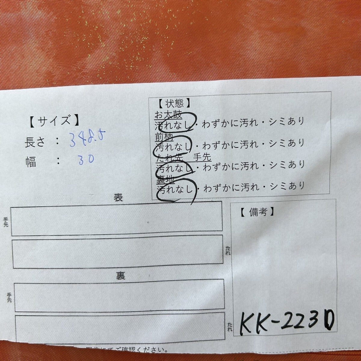 画像内に検品表を掲載しております。