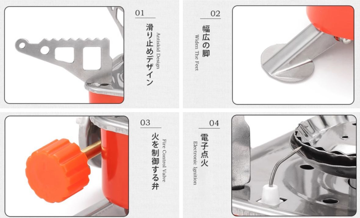 出品者も同型を使っていますが、計量コンパクトながら、高火力でキャンプのテーブルクッキングを存分に楽しめます。海外輸入品のため、有名メーカー品と比べると華奢な部分もありますが、実用的には十分機能しますし、何よりも安価で非常時にも手軽に使えるのでおススメです。