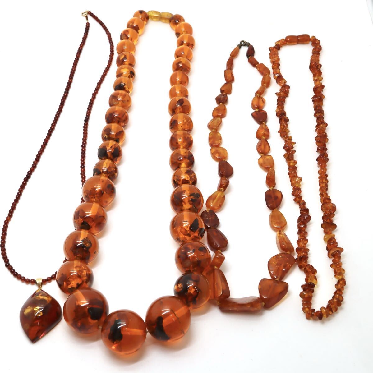 〈天然本琥珀ネックレス9点おまとめ〉