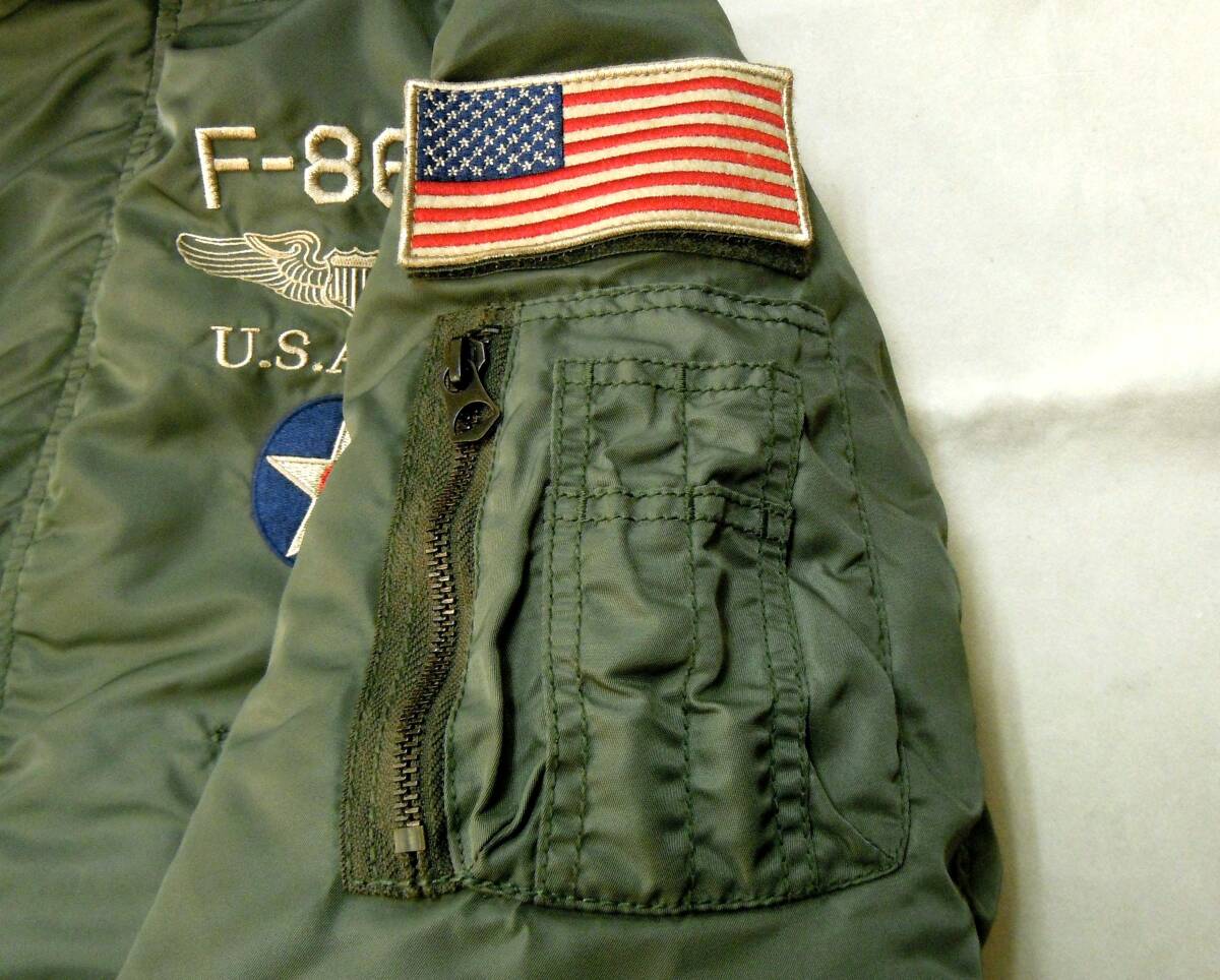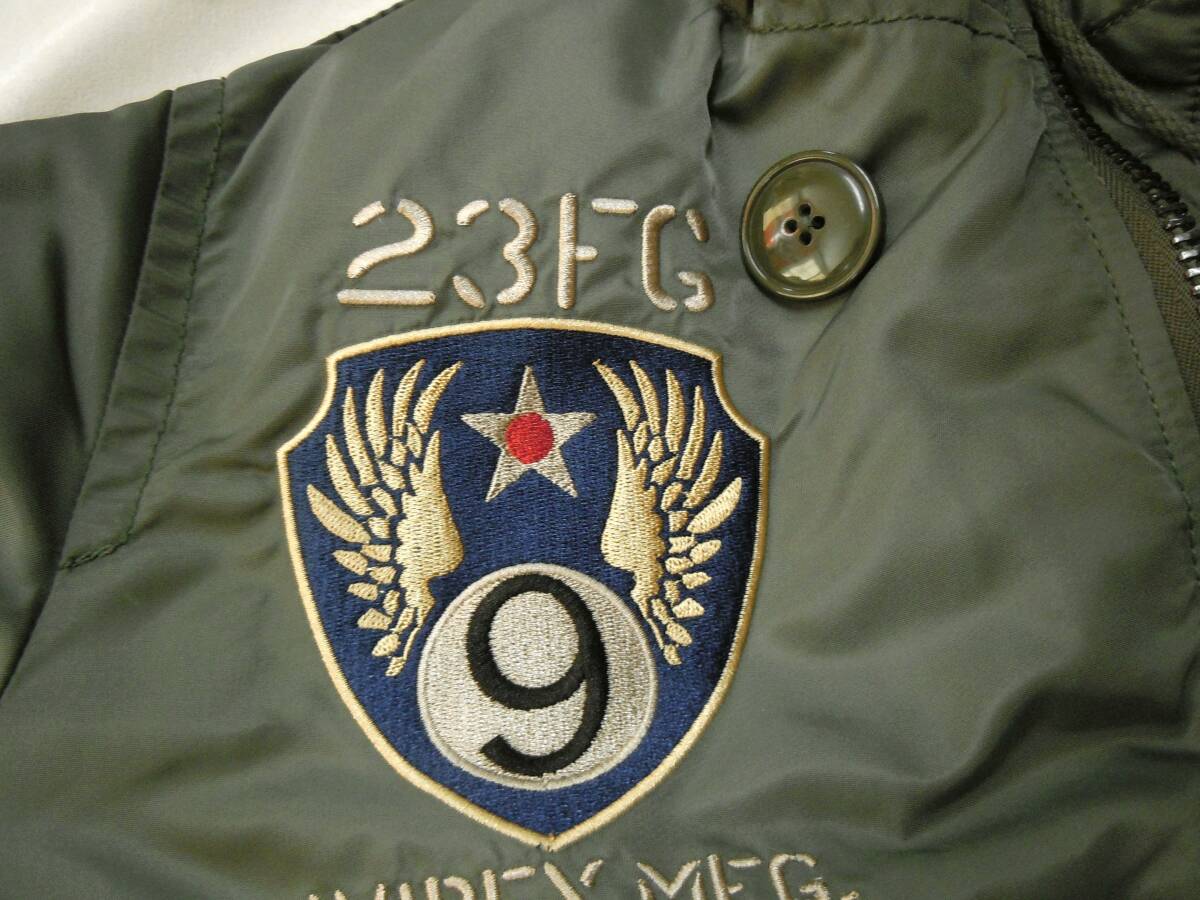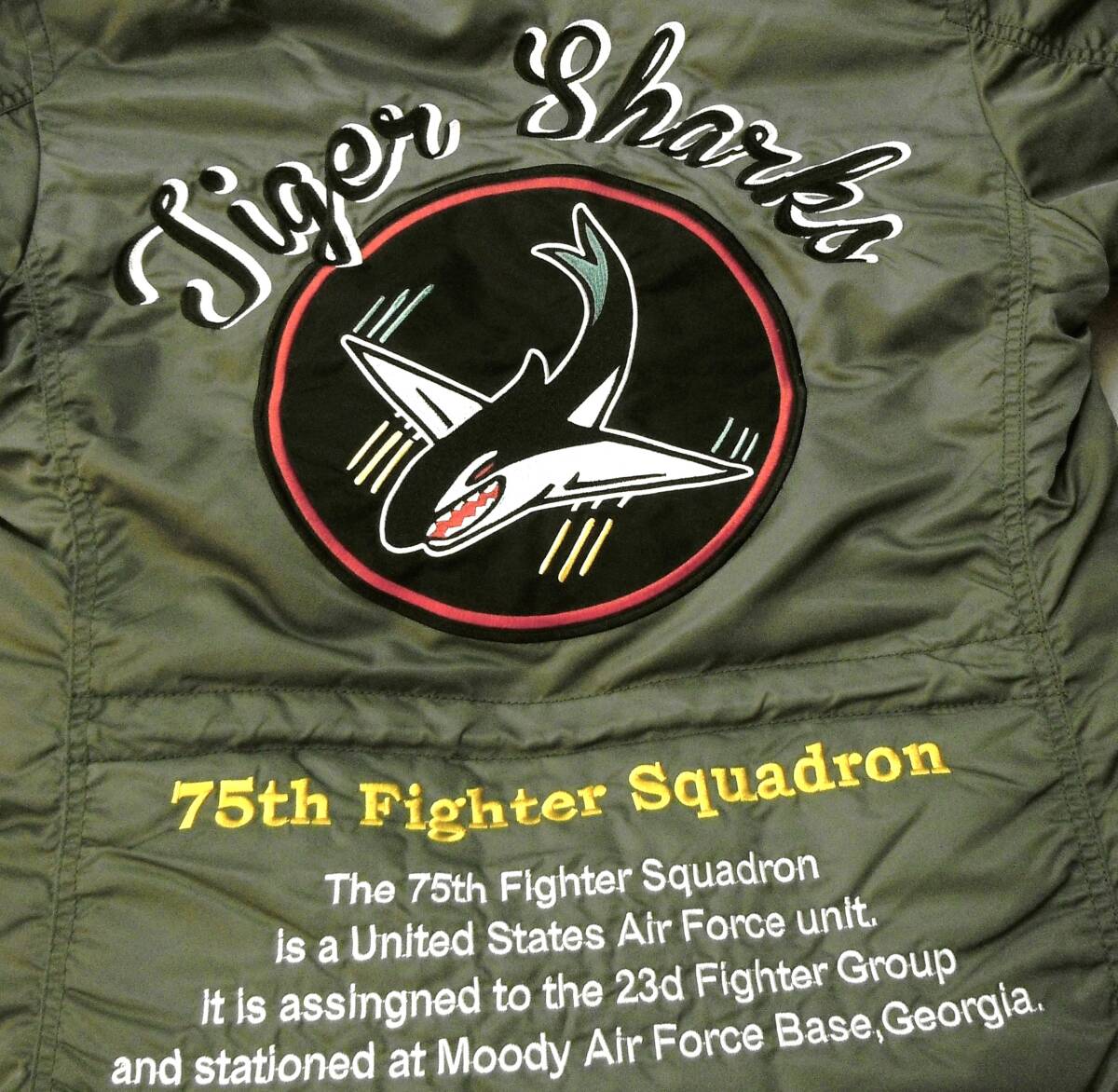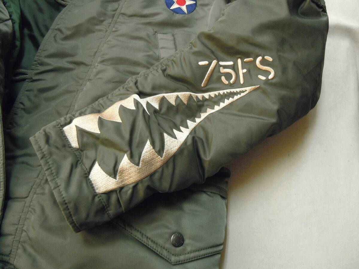 | N-3Bタイガーシャークスをモチーフとした刺繍とアップリケが立体的に仕上げたグラフィックが目を惹きます。 左袖の鮫の牙の刺繍もポイント。 部隊の士気とともに、戦闘機ウォッチャーたちの士気も高揚させたグラフィックのカッコよさが映える逸品です。 |