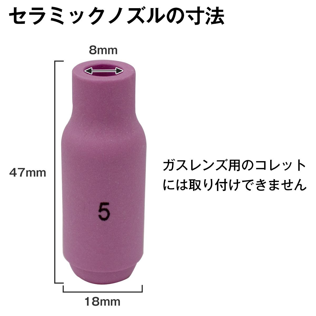【新品即納】セラミック ノズル 5個 セット TIG 溶接機 #5 10N49 互換 溶接 先端 スペア トーチ No5 2.4mm 内径7.9mm 5番 消耗品 DIY