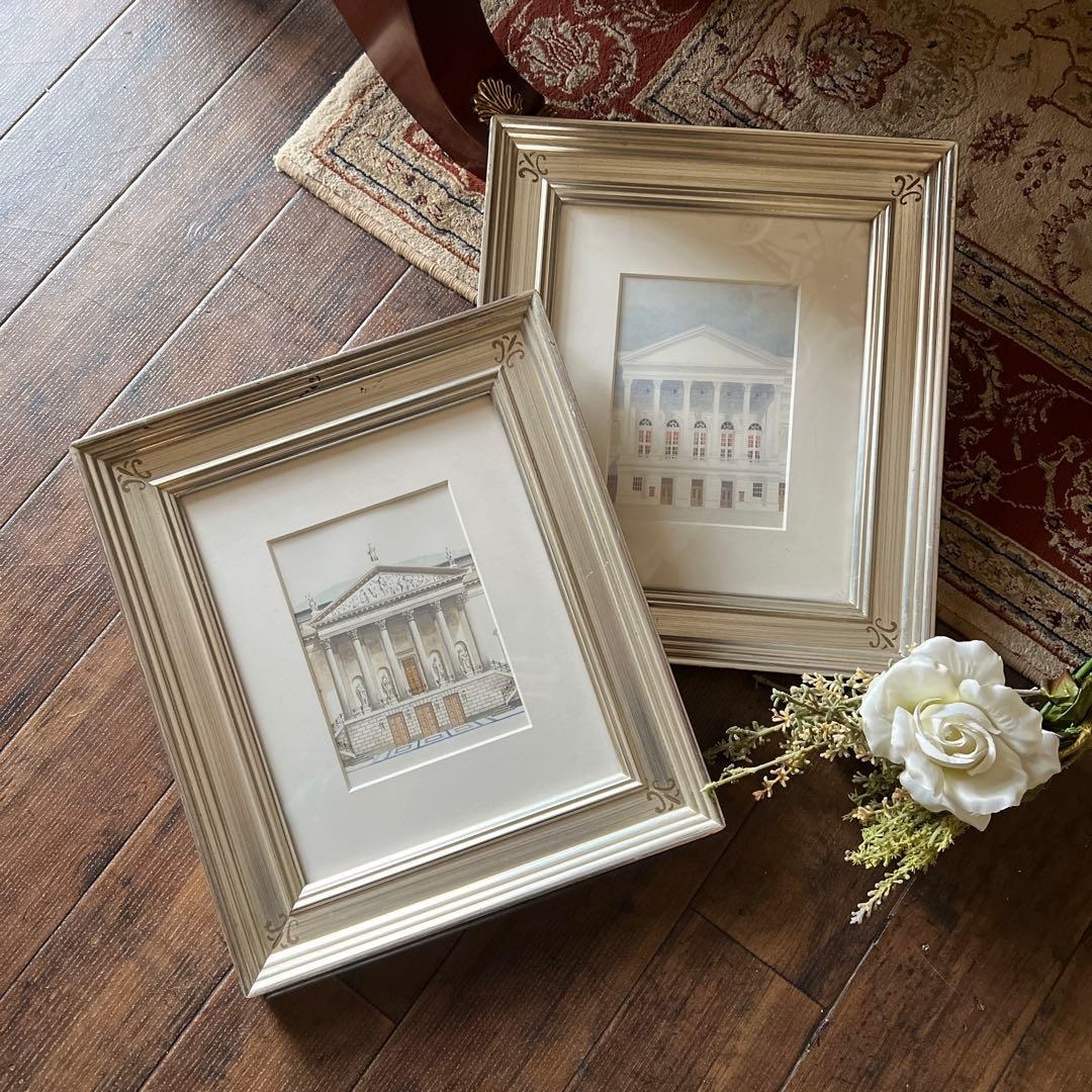 【 額縁 百合の紋章 2点 】 百合の紋章で縁取られたアンティーク感のあるゴールドフレーム 絵画の額縁としても、大切な写真を飾るフォトフレームとしてもお使い頂けます。中のプリントも雰囲気のあるものとなっており、そのまま飾っていただいても十分素敵です。プリントはクラシカルな歌劇場のイラストとなっております。おしゃれで雰囲気のあるお写真です。 ■サイズ(約) 幅 34.0㎝ 高さ 39.0㎝ 厚み 3.0㎝ 内寸 24.0×39.5㎝ ■状 態 経年による若干の小キズや汚れがあります。 フレームの金彩にハゲている部分があります。 裏の留め金サビ・若干の曲がり等があります。 中のプリントは台紙にテープで固定されております。 詳細は写真でご確認ください。 ※神経質な方・完璧をお求めの方はご購入をお控えください。 詳細は写真を参考の上、ご入札をお願い致します。 商品写真に関しまして、PC環境や撮影状況等により 色合いが実物と若干異なる場合がございます。 また、サイズに関しましても若干の誤差が生じる場合がございます。 ご理解、ご了承の上、ご入札をお願い致します。 下記の注意事項をよくご確認の上、ご入札をお願い致します。 金額の入力ミスによる入札金額の変更や入札取消はできませんのでご了承下さいませ。 |