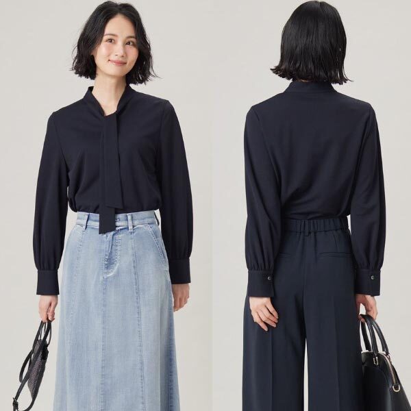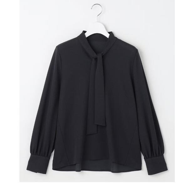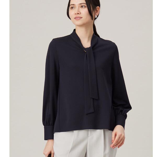 胸元のボウタイがポイントのきれい見えブラウスです。
