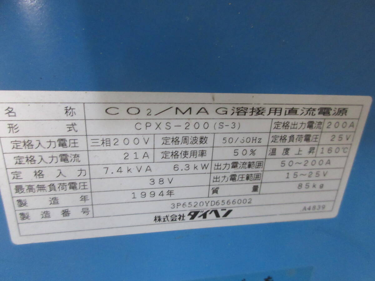 引き上げ品 DAIHEN ダイヘン CO2/MAG溶接機 半自動溶接機 CPXS-200(S-3) DYNA AUTO XS200 大阪引取