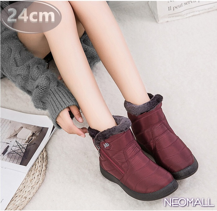 レディース スノーシューズ 【957】 レッド 24.0cm ムートンブーツ スニーカー ウィンターブーツ 裏起毛 防水 防寒 防滑 冬用靴 綿靴