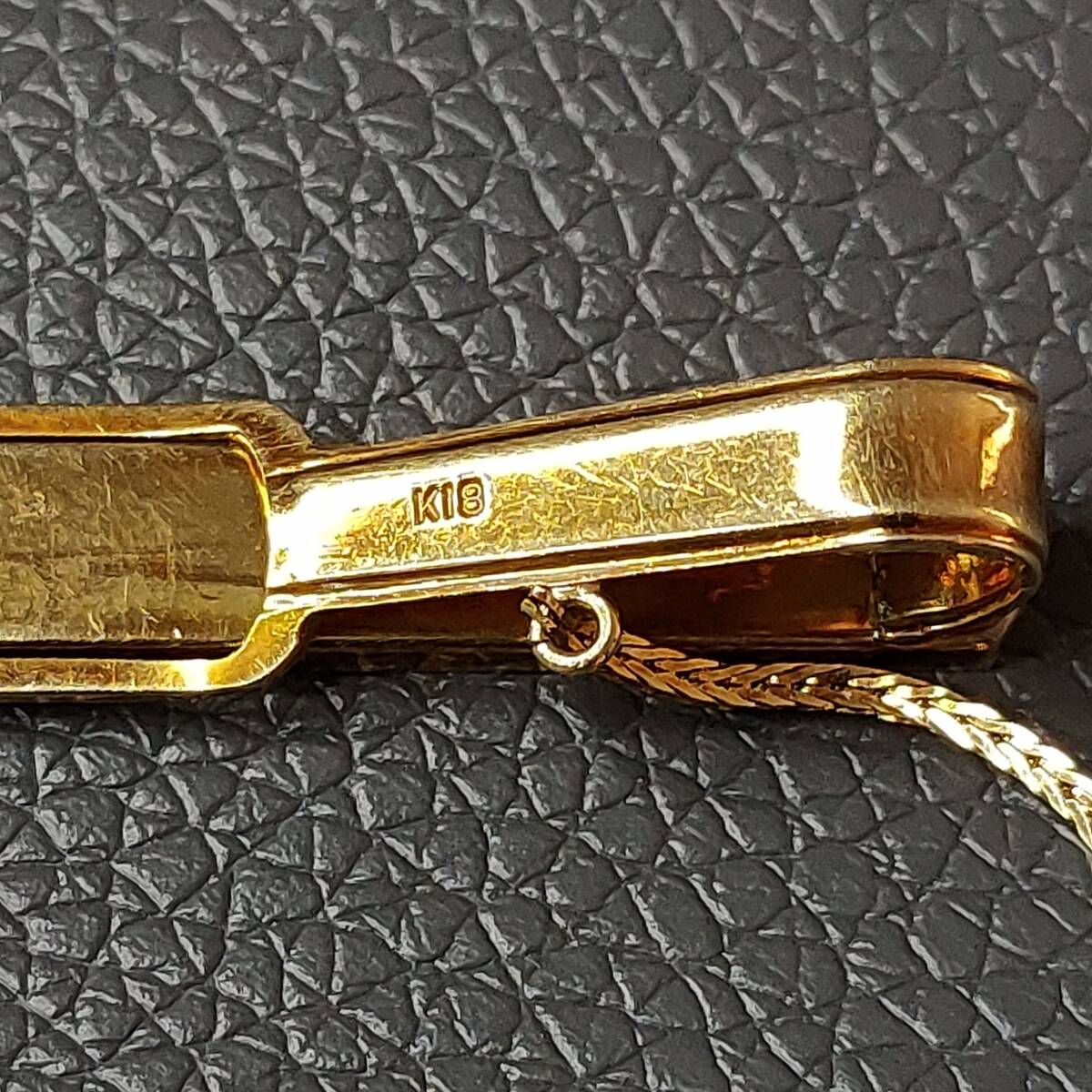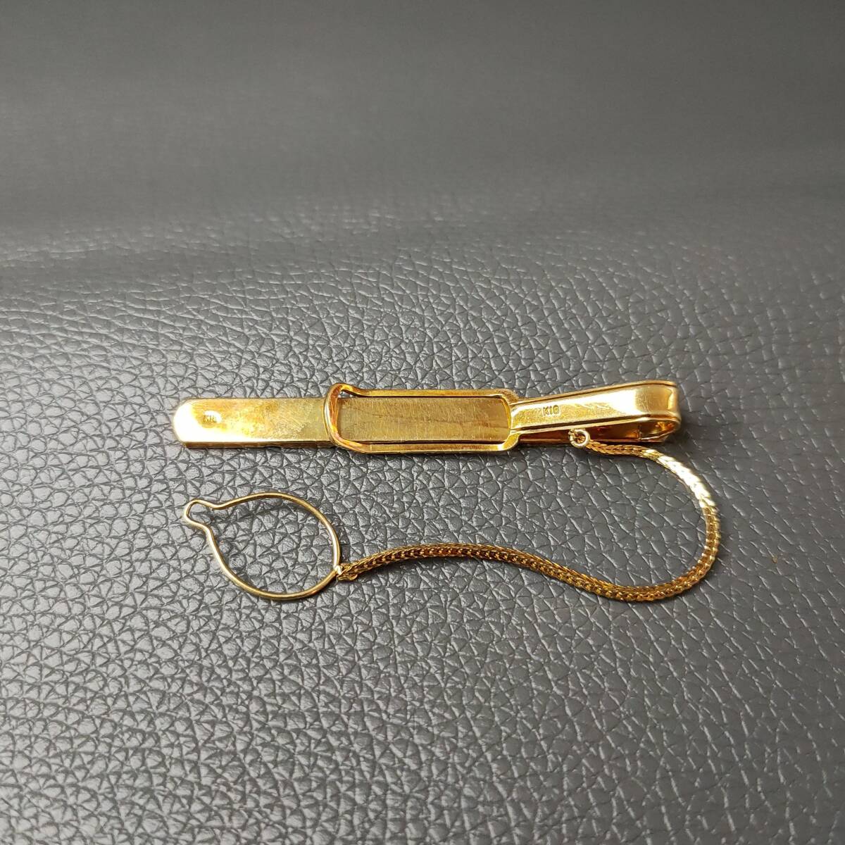 K18ゴールドならではの重みと深い輝きが存在感を放つ、ネクタイピン&カフスのセットです。
