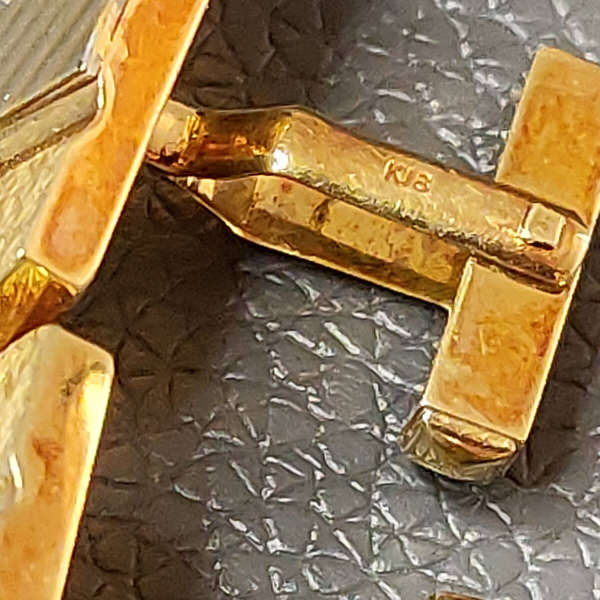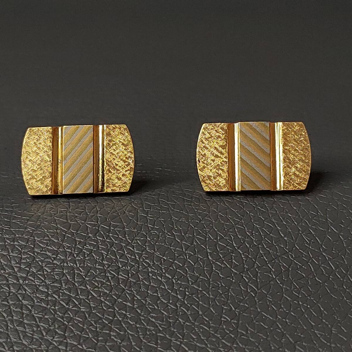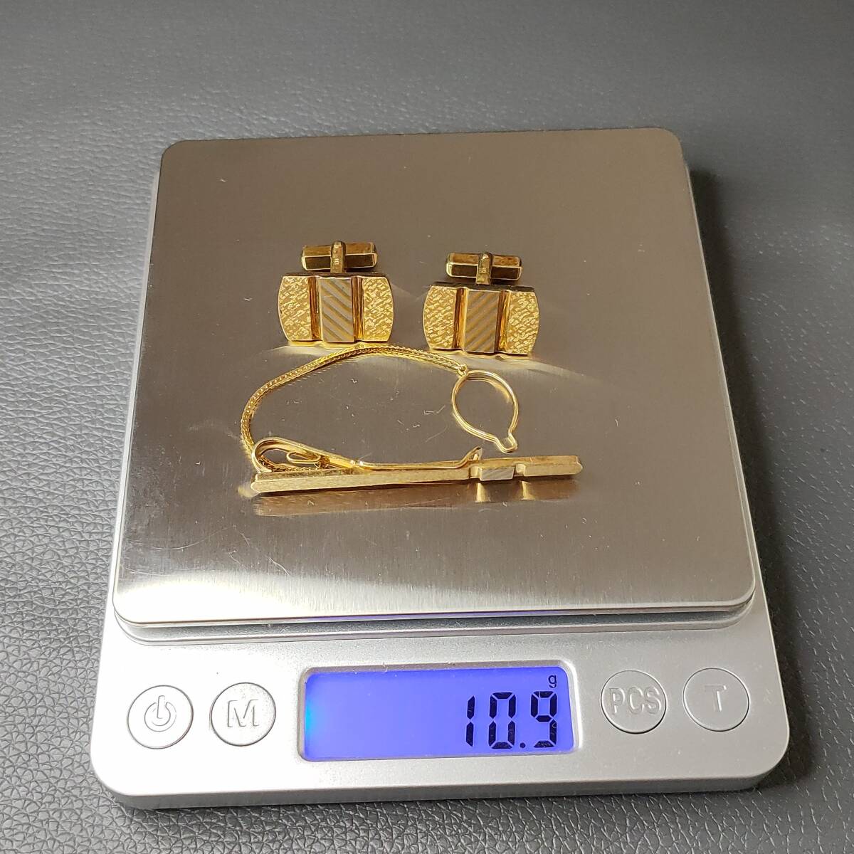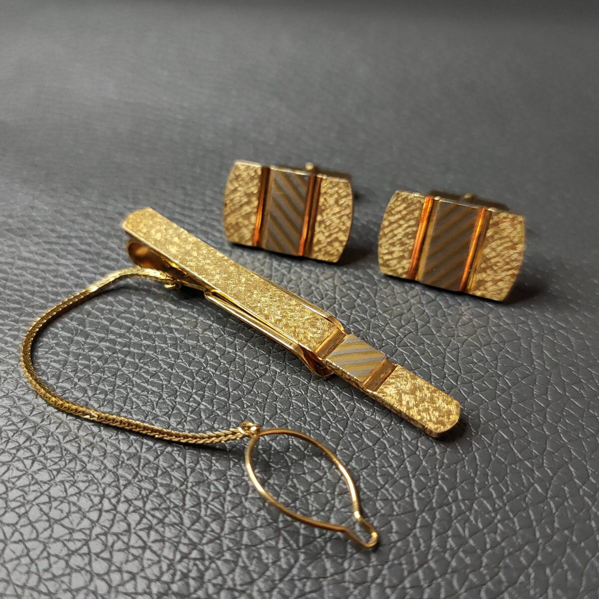 K18ゴールドの深い輝きが際立つ、上質なネクタイピン&カフスのセットです。