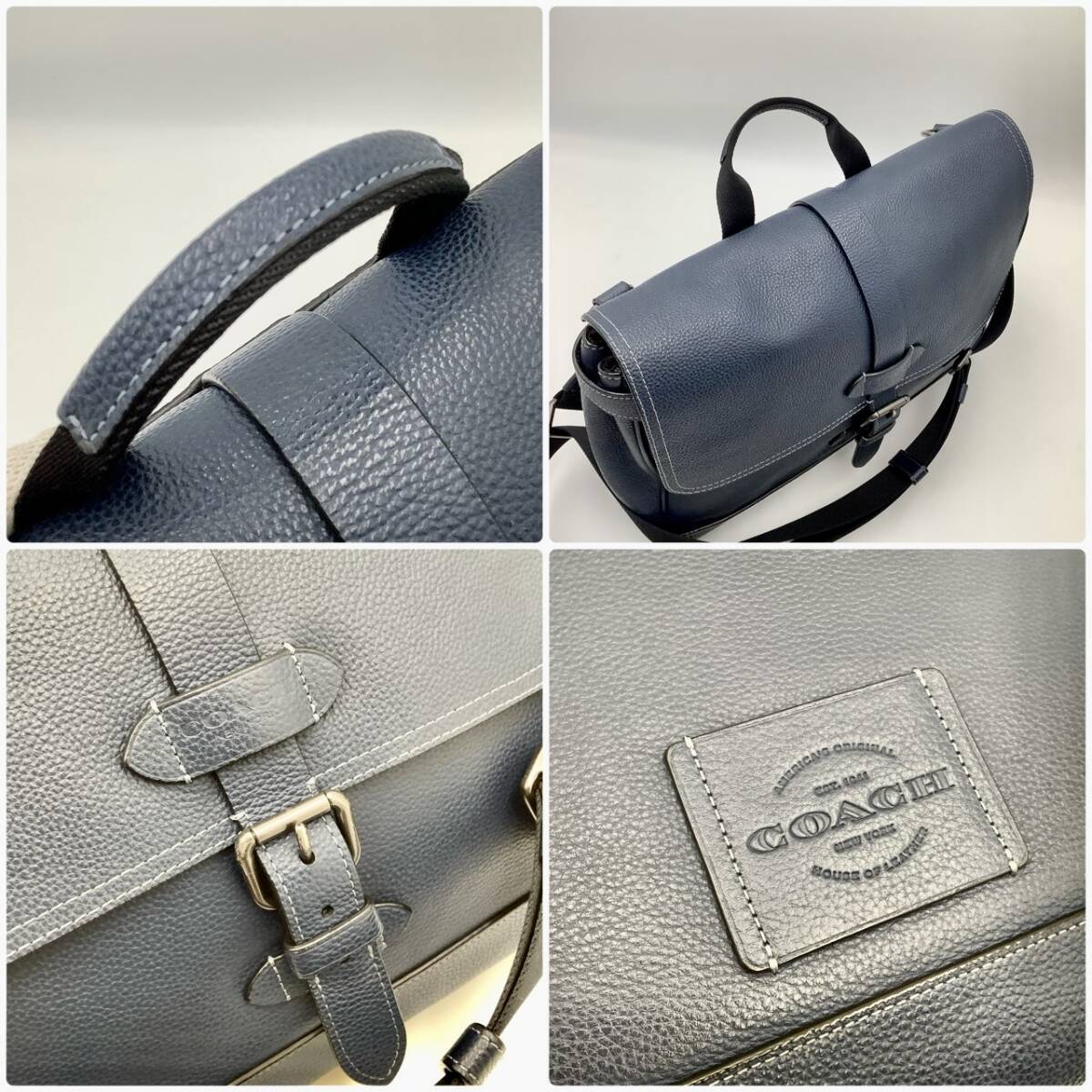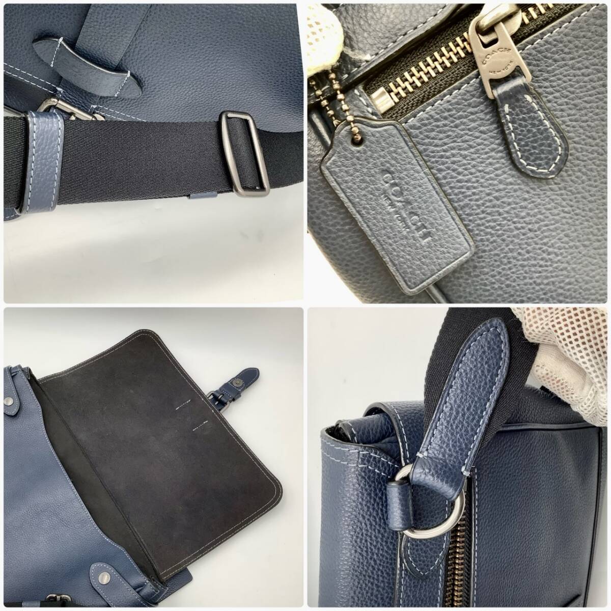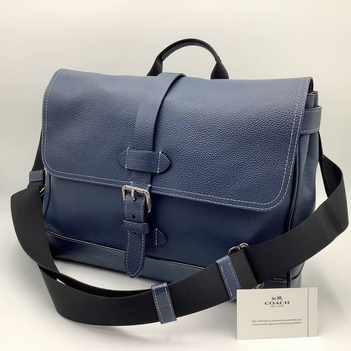 ☆未使用保管品☆ 近年モデル コーチ COACH ハドソン メッセンジャー バッグ ショルダー レザー 肩掛け 斜め掛け A4 2WAY ネイビー メンズ