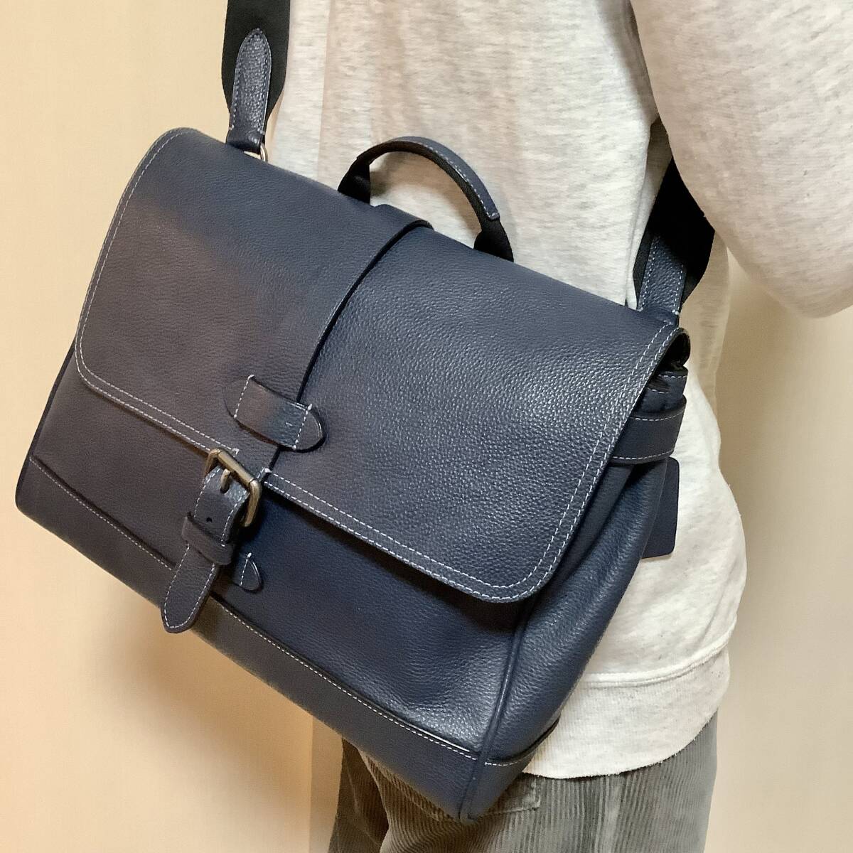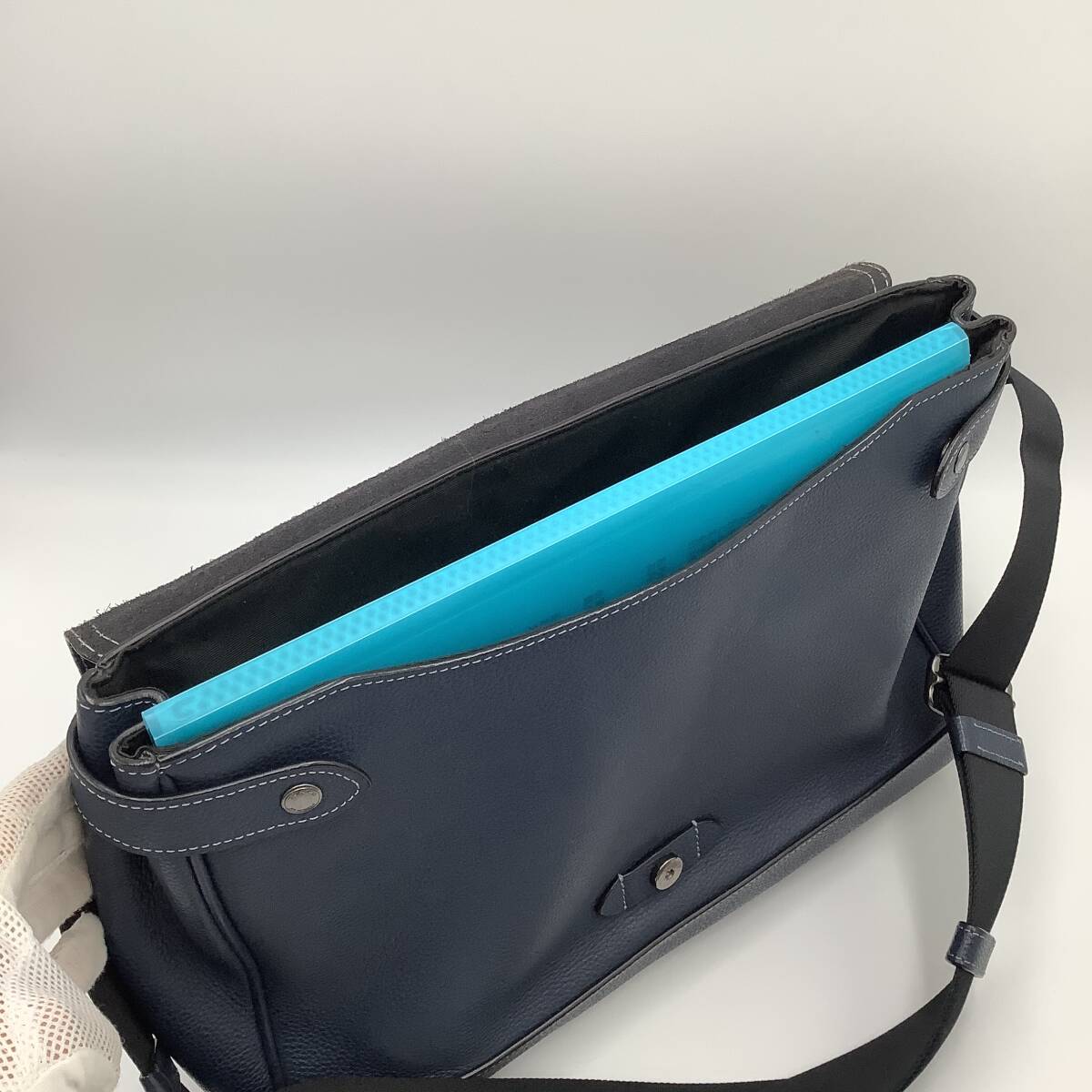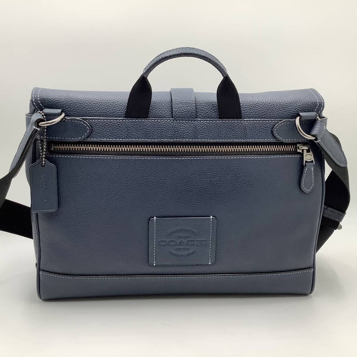☆未使用保管品☆ 近年モデル コーチ COACH ハドソン メッセンジャー バッグ ショルダー レザー 肩掛け 斜め掛け A4 2WAY ネイビー メンズ