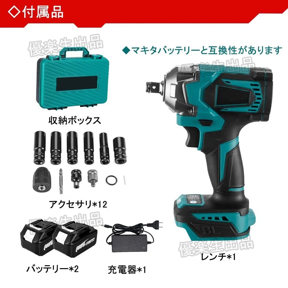 電動インパクトレンチ 無段変速 正逆転両 700N.m 多点セ ット ー1台4役 充電器付き マキタバッテリー対応 12個セット
