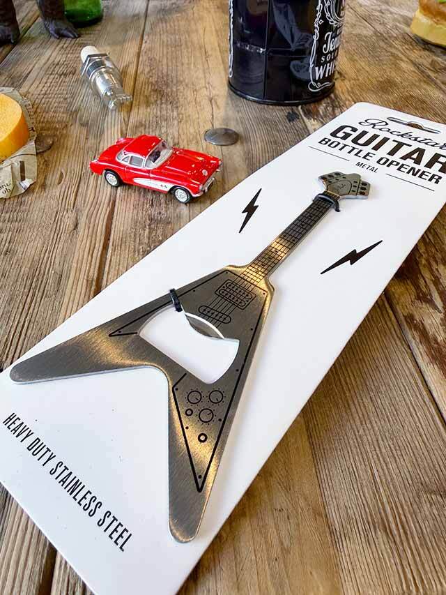 ロック好きにはたまらないギター型ボトルオープナーです。