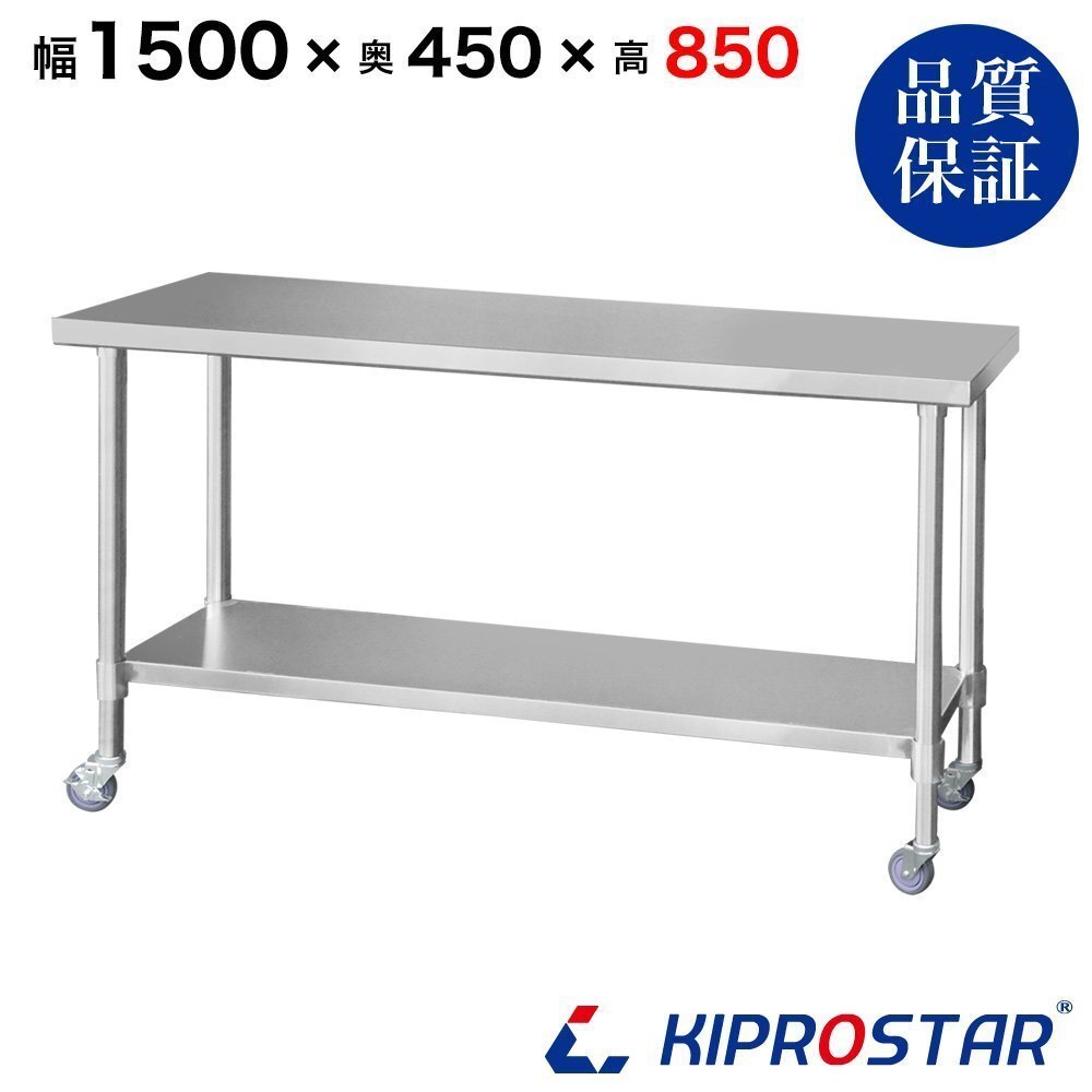 | 即納 業務用ステンレス作業台 キャスター付き 調理台 1500×450×850 板厚1.2mmモデル |