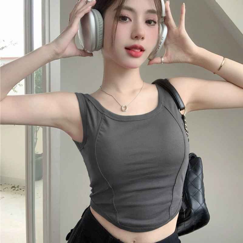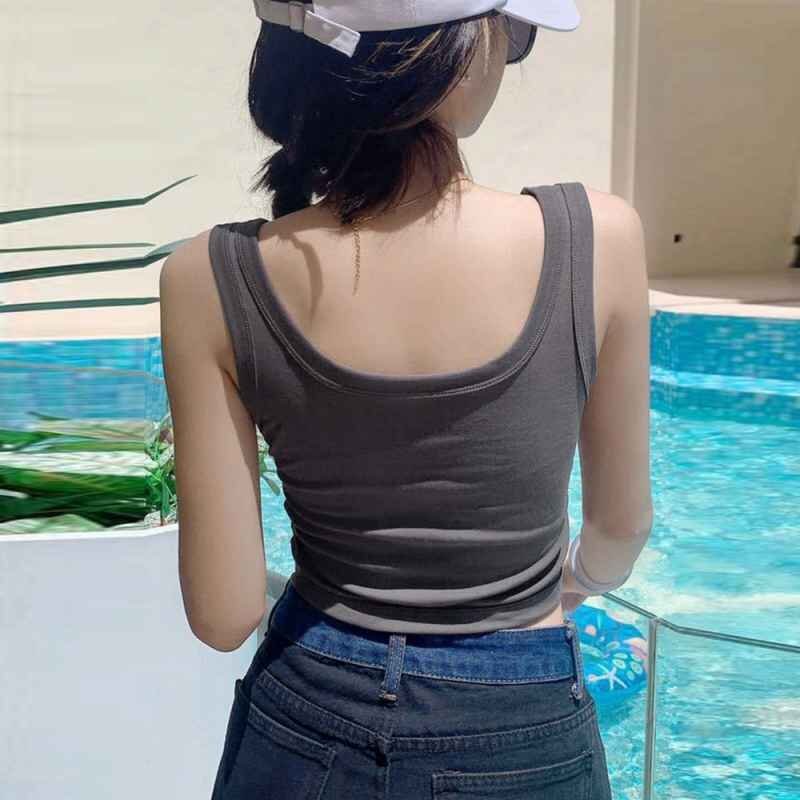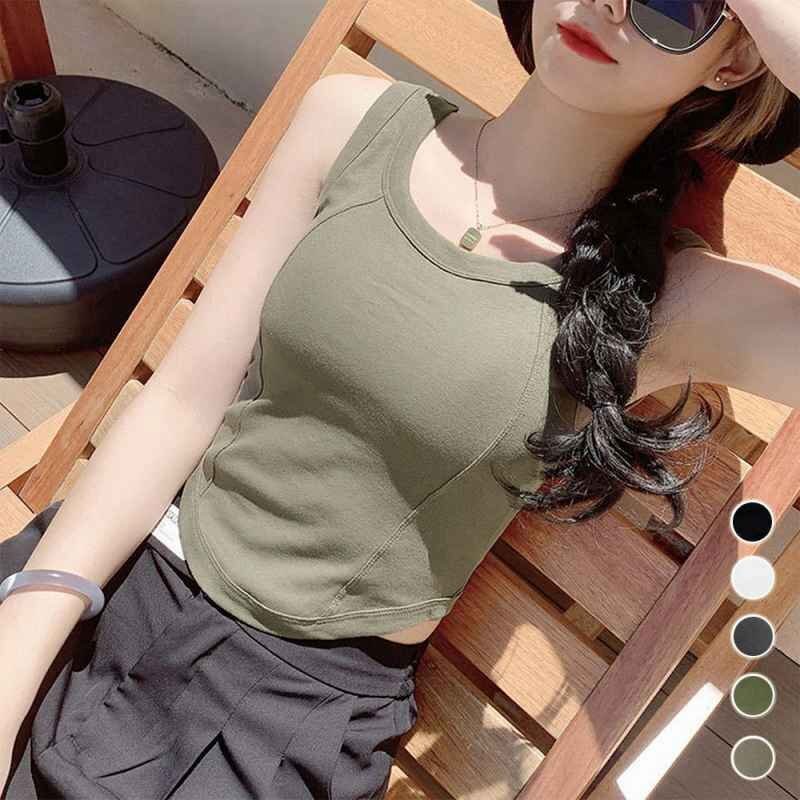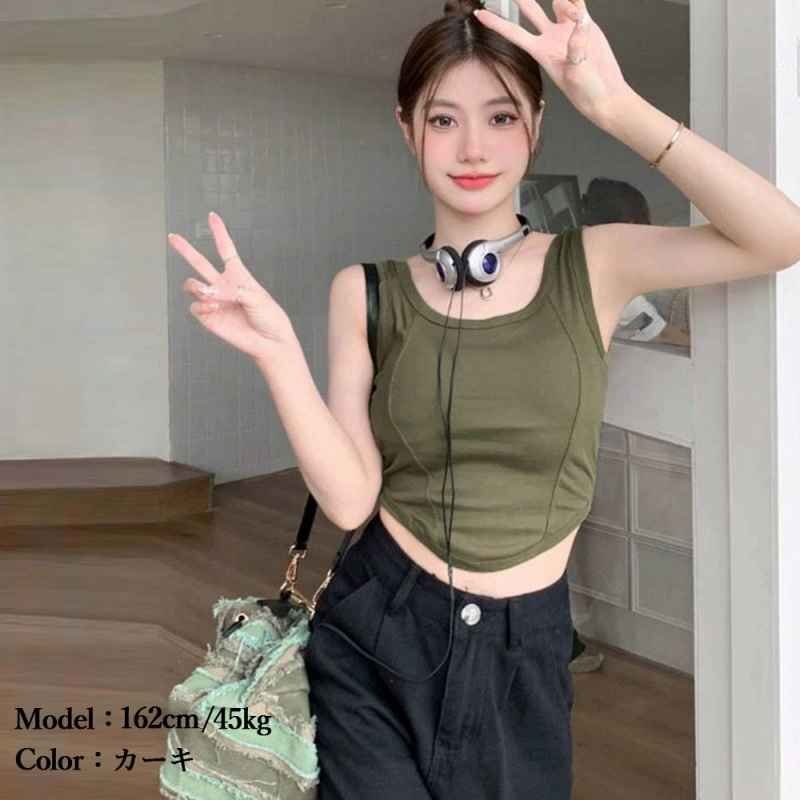 トップスとしても、インナーとしても使い勝手抜群なカップインタンクトップ。