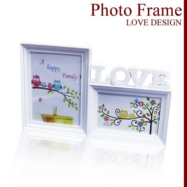 フォトフレーム 『Eタイプ』 壁掛け スタンド 写真立て ホワイト アンティーク ウッド 家族写真 Sサイズ